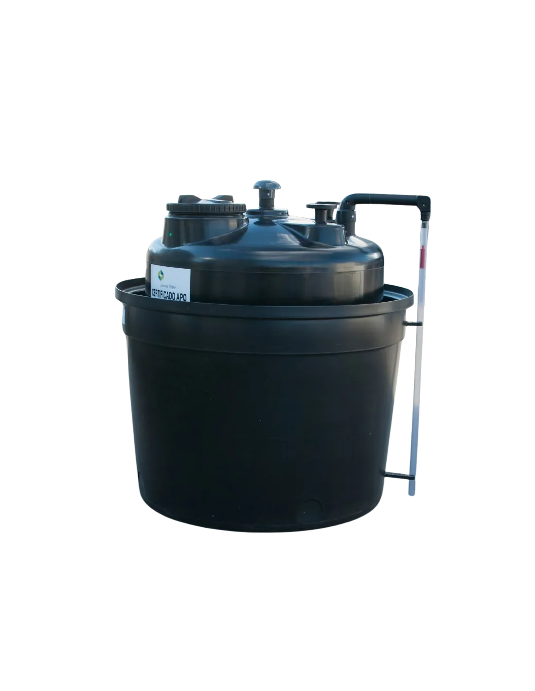 Fabricació en polietilè lineal tractat anti-ultraviolats, qualitat alimentària, color estàndard negre. • Lectura de nivell sobre els tancs en blanc natural.