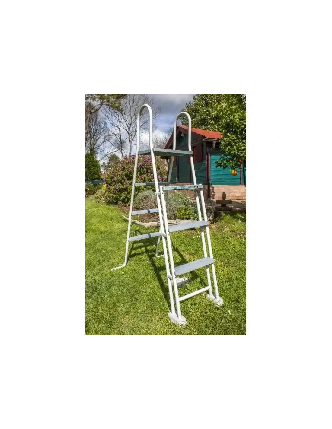 Inclou escala de seguretat amb plataforma . És d´acer galvanitzat i lacat en blanc amb 6 esglaons, plataforma superior i amb frontal extraïble.