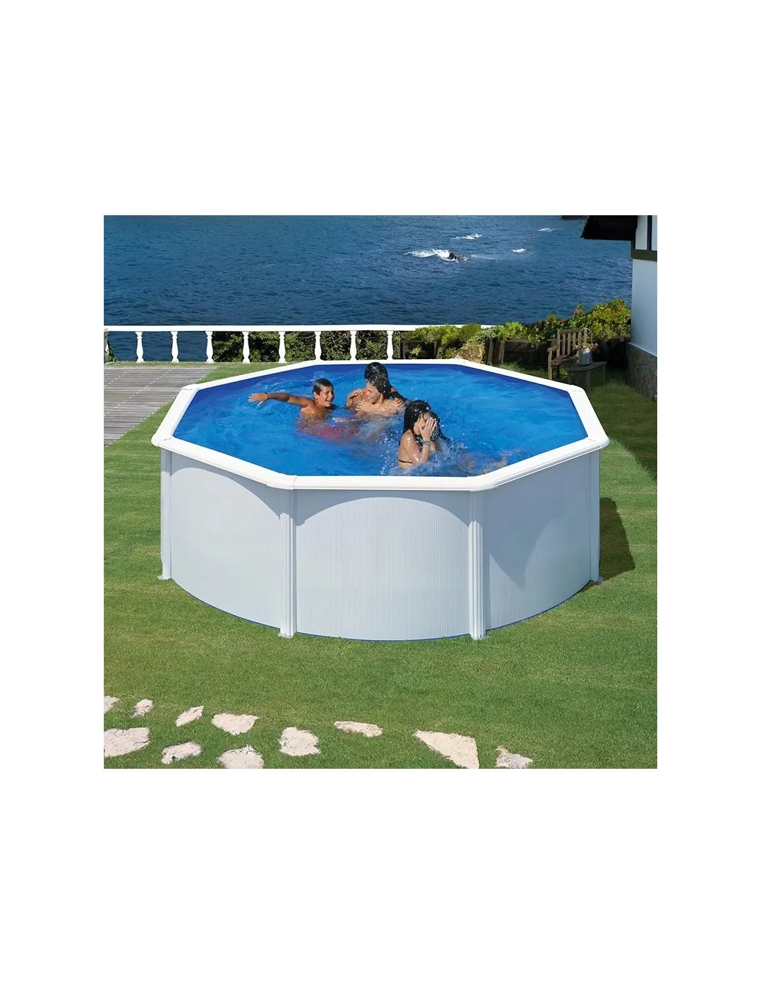 Piscina rodona (circular) Gre Wet KIT300QGRE realitzada en acer de color blanc.