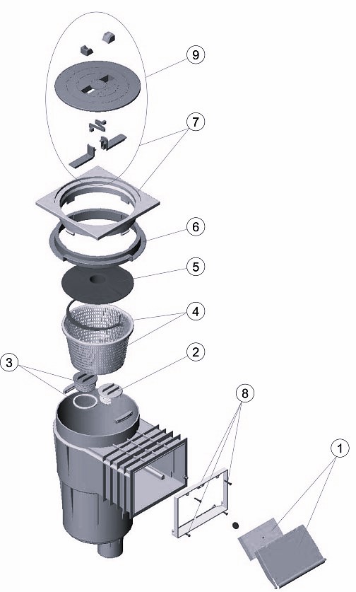 Ersatzteile für Skimmer 17,5L AstralPool 11306 (Ref. Nr.: 11306). Original AstralPool-Ersatzteile.