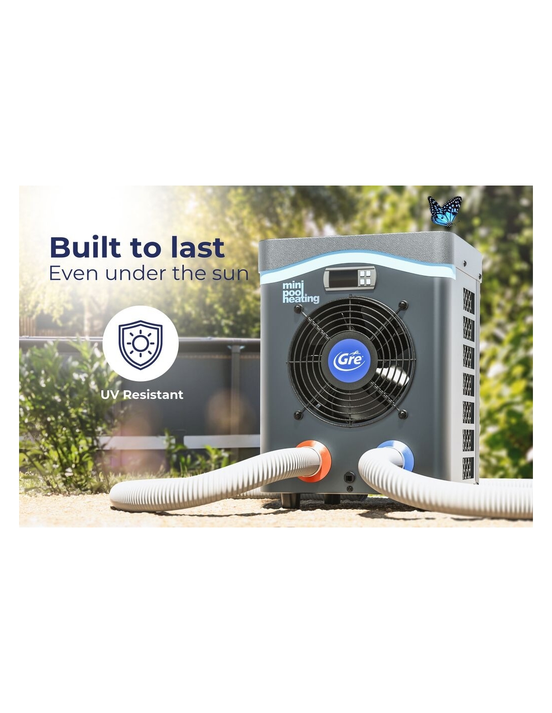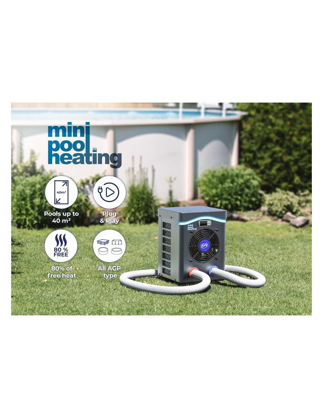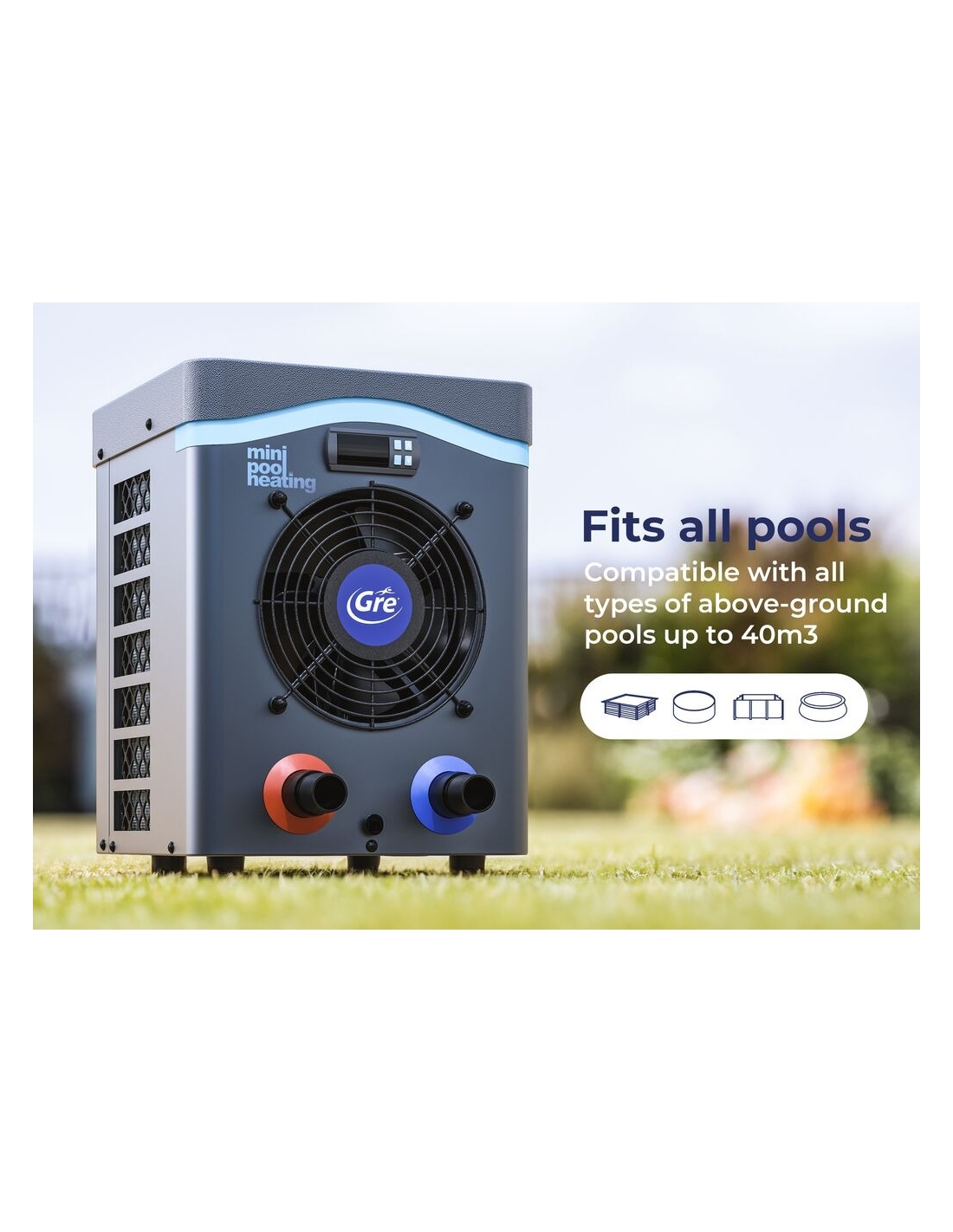 Wärmepumpeder Marke Gre, speziell entwickelt für die Erwärmung des Wassers von Aufstellbecken.