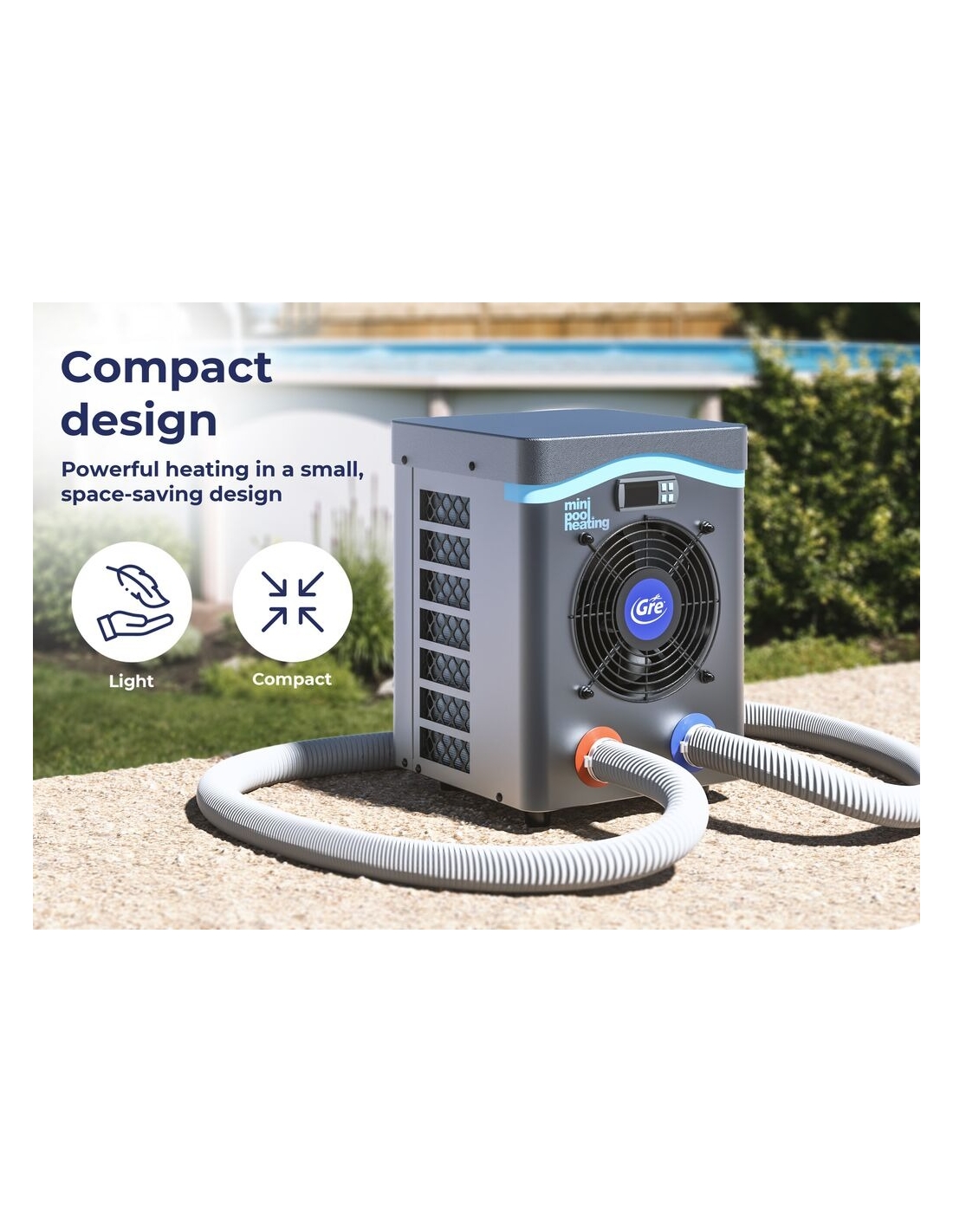 Die GRE-Mini-Wärmepumpenreihe besteht aus zwei Modellen für Schwimmbecken bis zu 20 m3 und 30 m3.