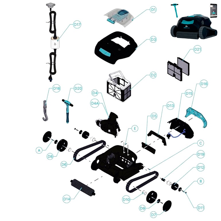Spare parts for robot cleaner Dolphin Liberty 400, (Reference: 99998140-EU). Original spare parts Dolphin.