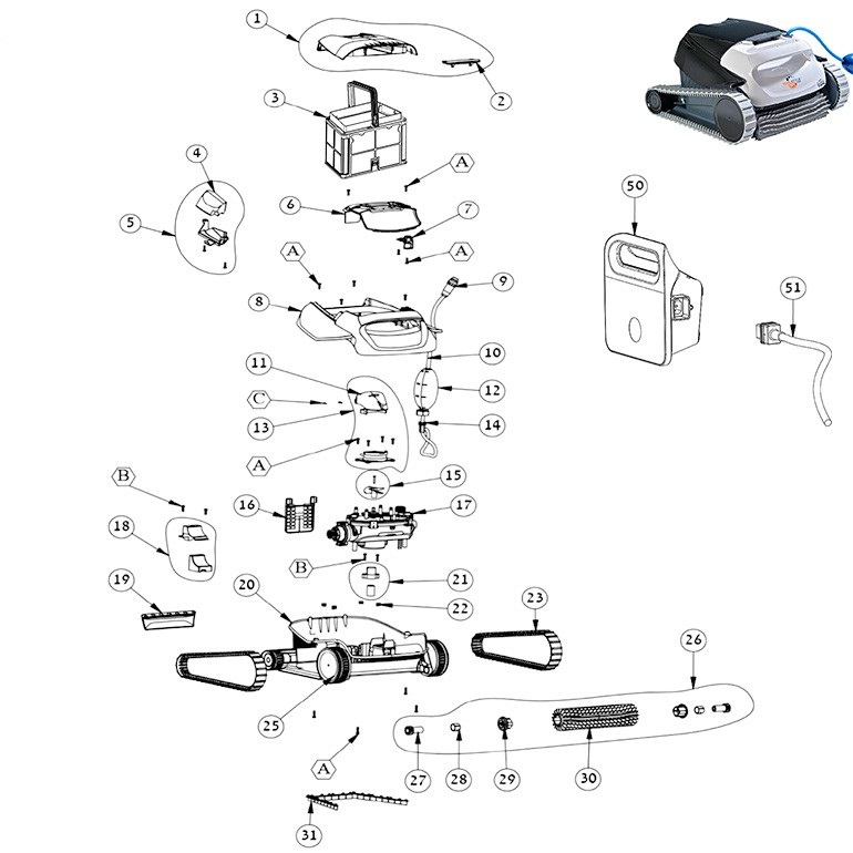 Spare parts for pool cleaner robot Dolphin PoolStyle Plus, (Reference: 99996147-SP). Original spare parts Dolphin.