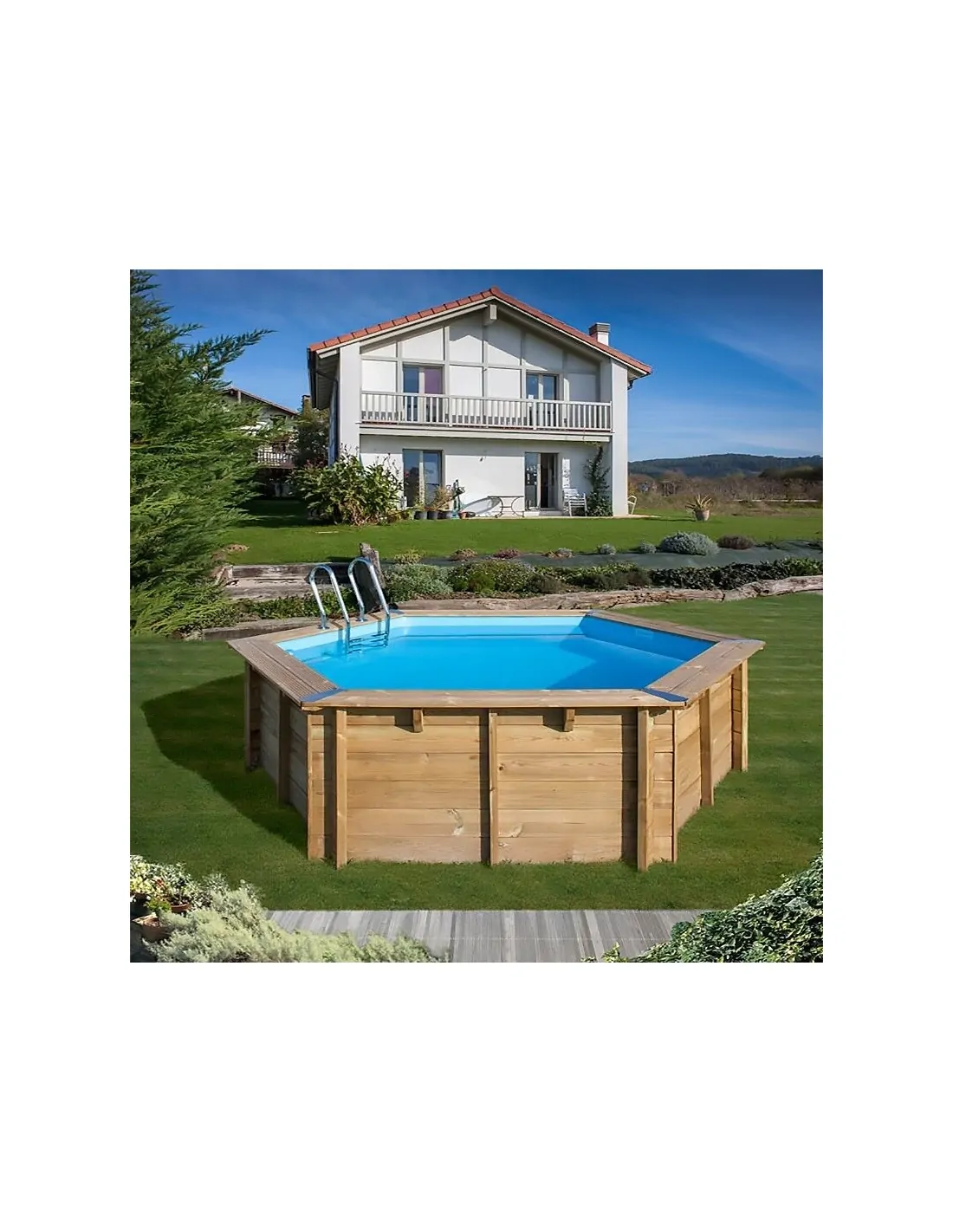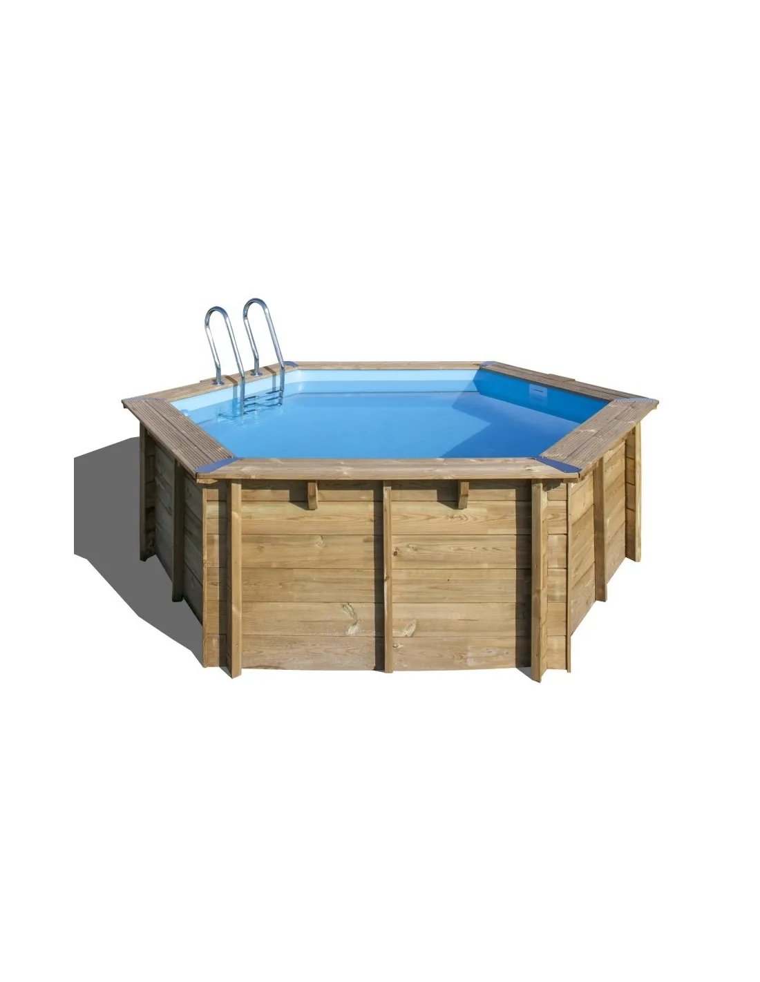 Solid wood swimming pool Gre Vanille 2 of the Sunbay series with round shape (hexagonal) 400 cm diameter and 119 cm height.
