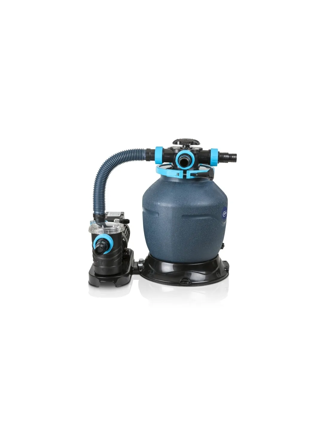 Complete kit includes 6 m³/h sand filter, 60/100 liner, access ladder and protective mat.