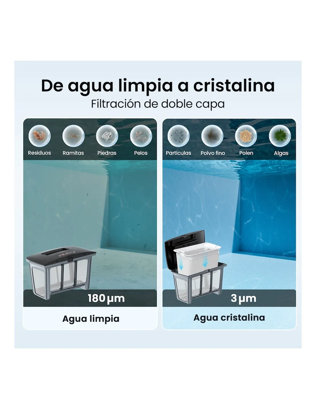 Aiper wireless pool cleaners have become one of the most popular options among our customers thanks to their freedom of movement and performance in small and medium-sized pools. If you prefer a mains-operated system, we also offer a wide range of electric pool cleaners with excellent coverage and thorough cleaning.