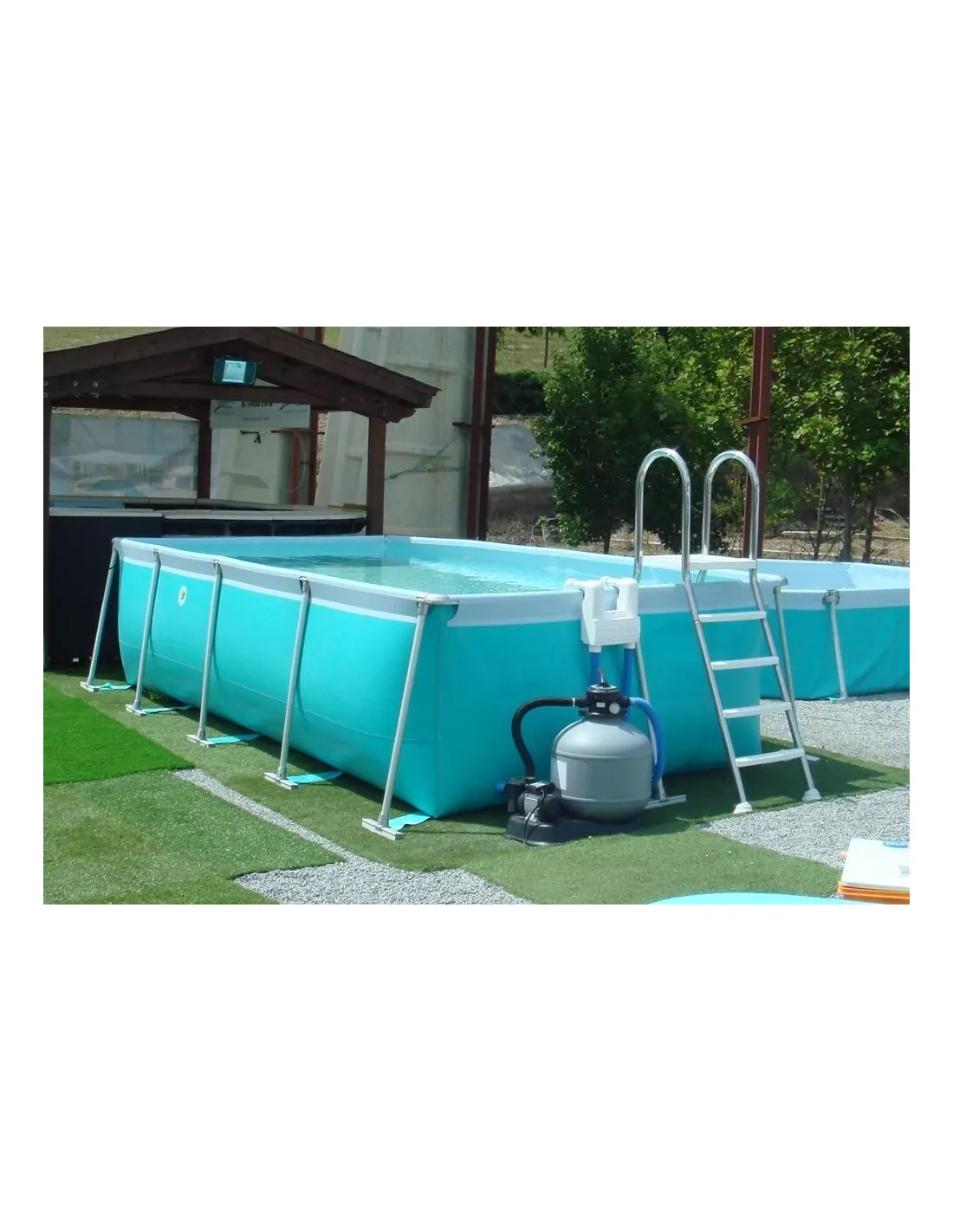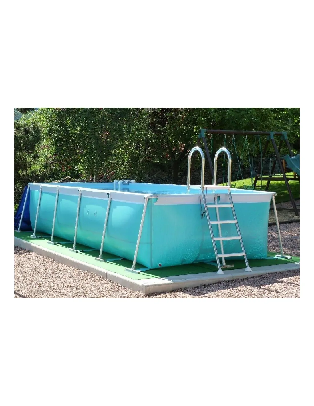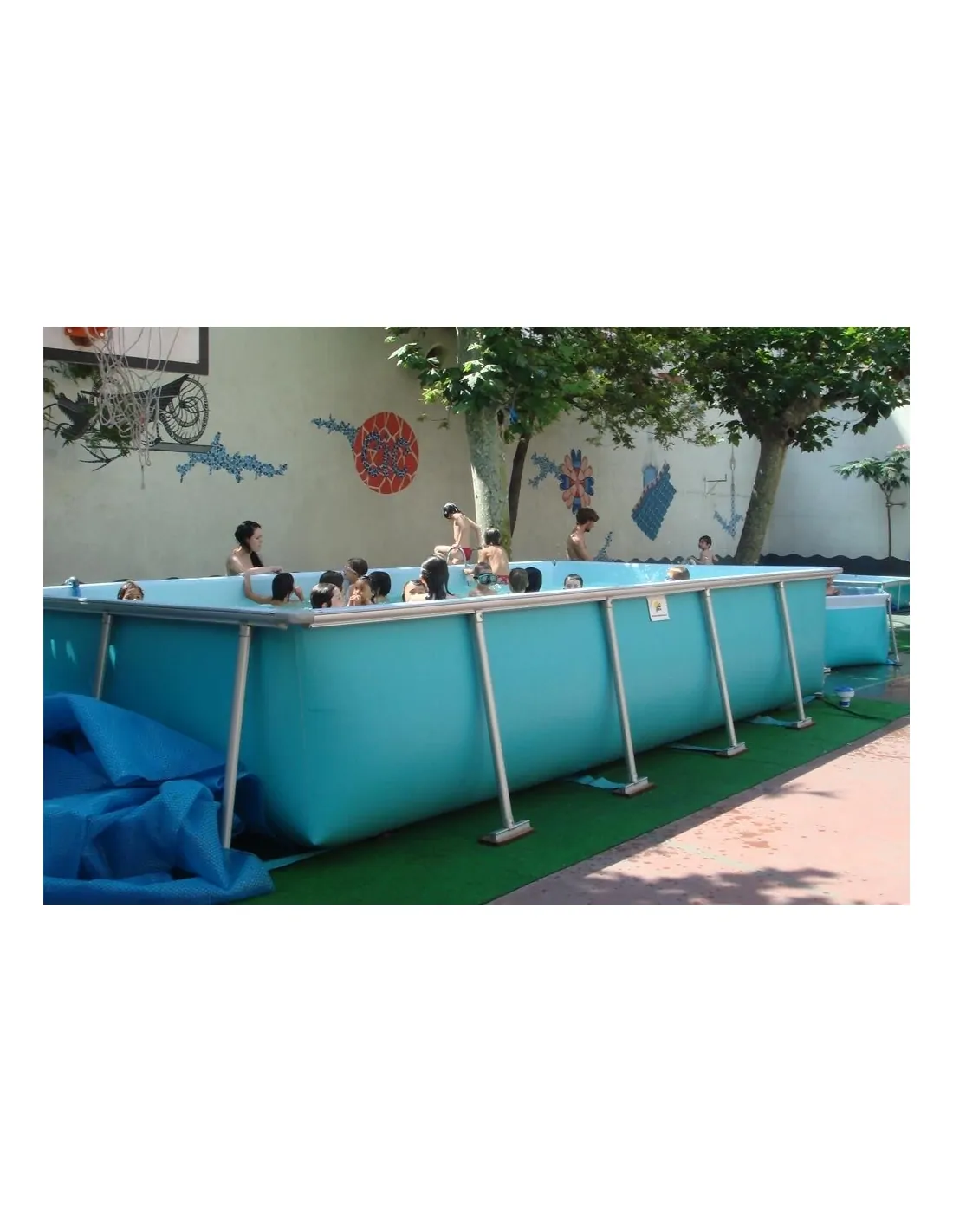 Rectangular canvas pool consisting of an all-aluminum frame, with extruded and anodized profiles (tubular structure), of excellent durability and reduced weight.