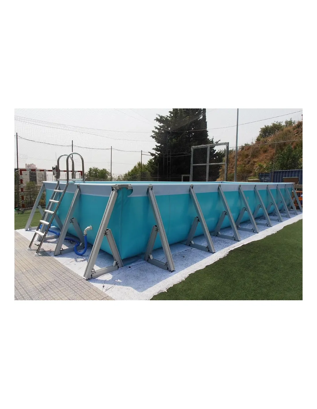 All ranges are composed of modular elements that represent simplicity and easy replacement of possible damaged or missing parts. All structures are supported after the first two modules have been assembled, making it easy to continue assembly without having to assemble on the ground and without the effort of having to lift a whole assembly. The rectangular pools have a strong connecting piece at each corner, leaving them solidly closed, so that the pool stands upright without water. In addition, being closed at the corners avoids the continuous movement of the sides and the danger of accidents inside the corners.
