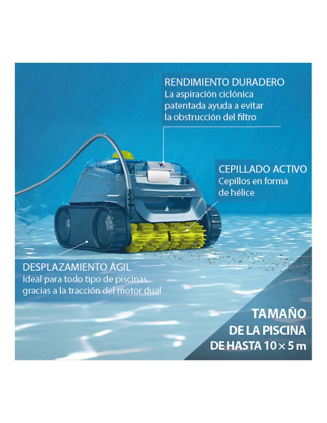 - For in-ground and above-ground pools with rigid walls up to 10x5 m