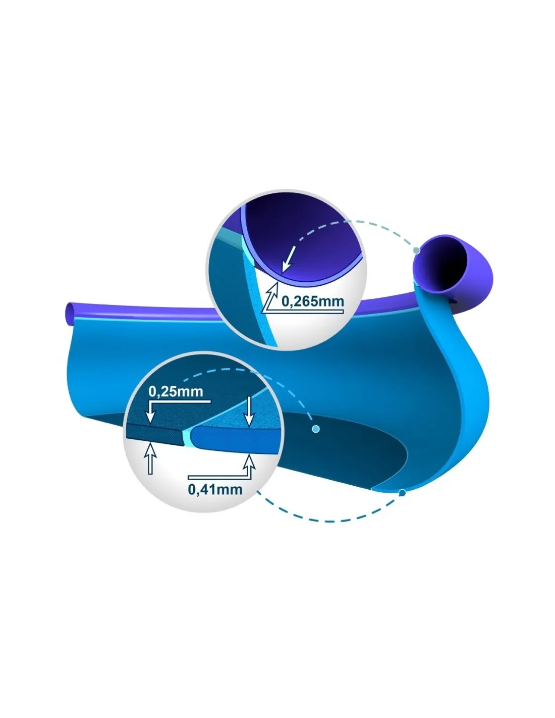 Made in blue color, with resistant fabric, three laminated layers of PVC-Polyester that provide greater firmness and resistance.