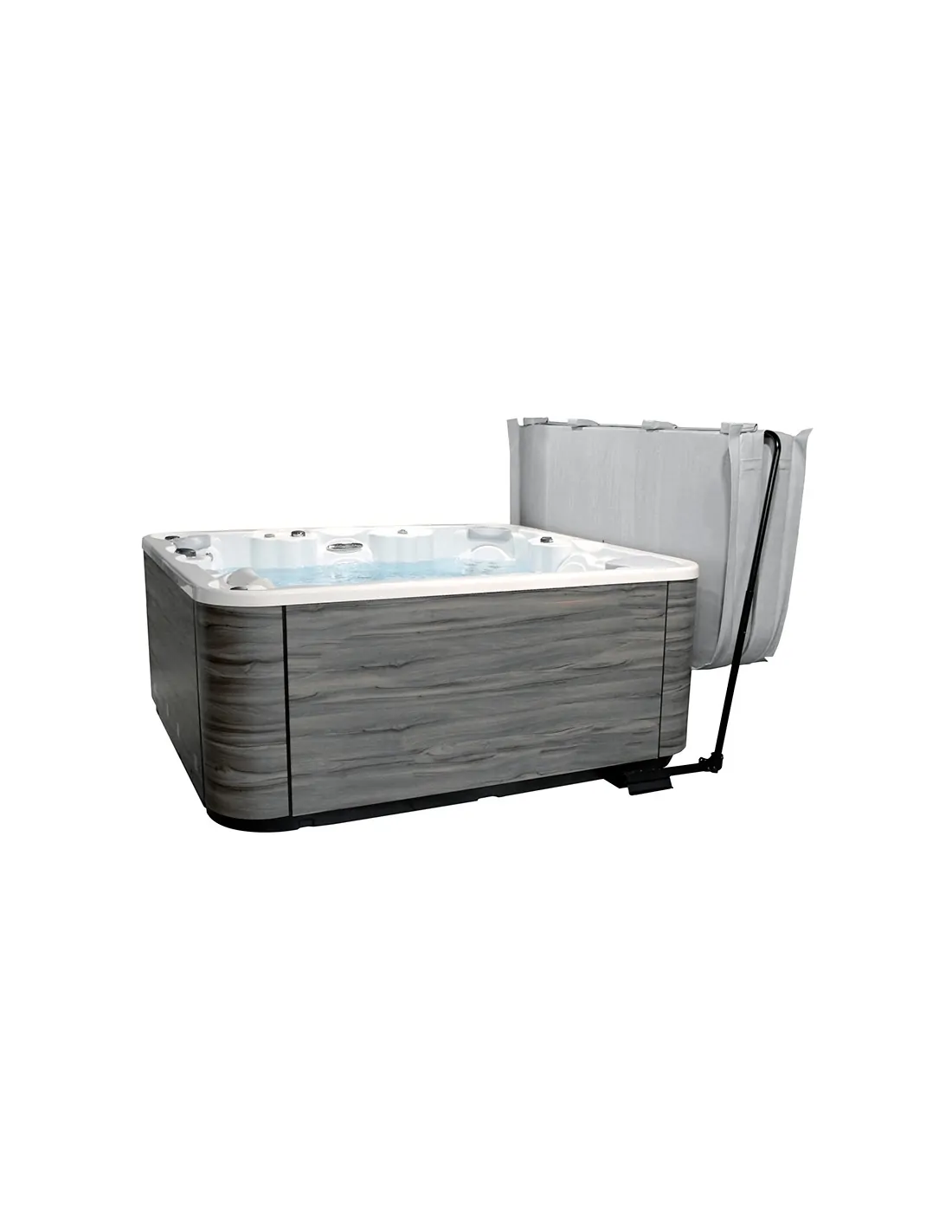 Spa cover collector with metal support, which facilitates the handling and manipulation of the cover.