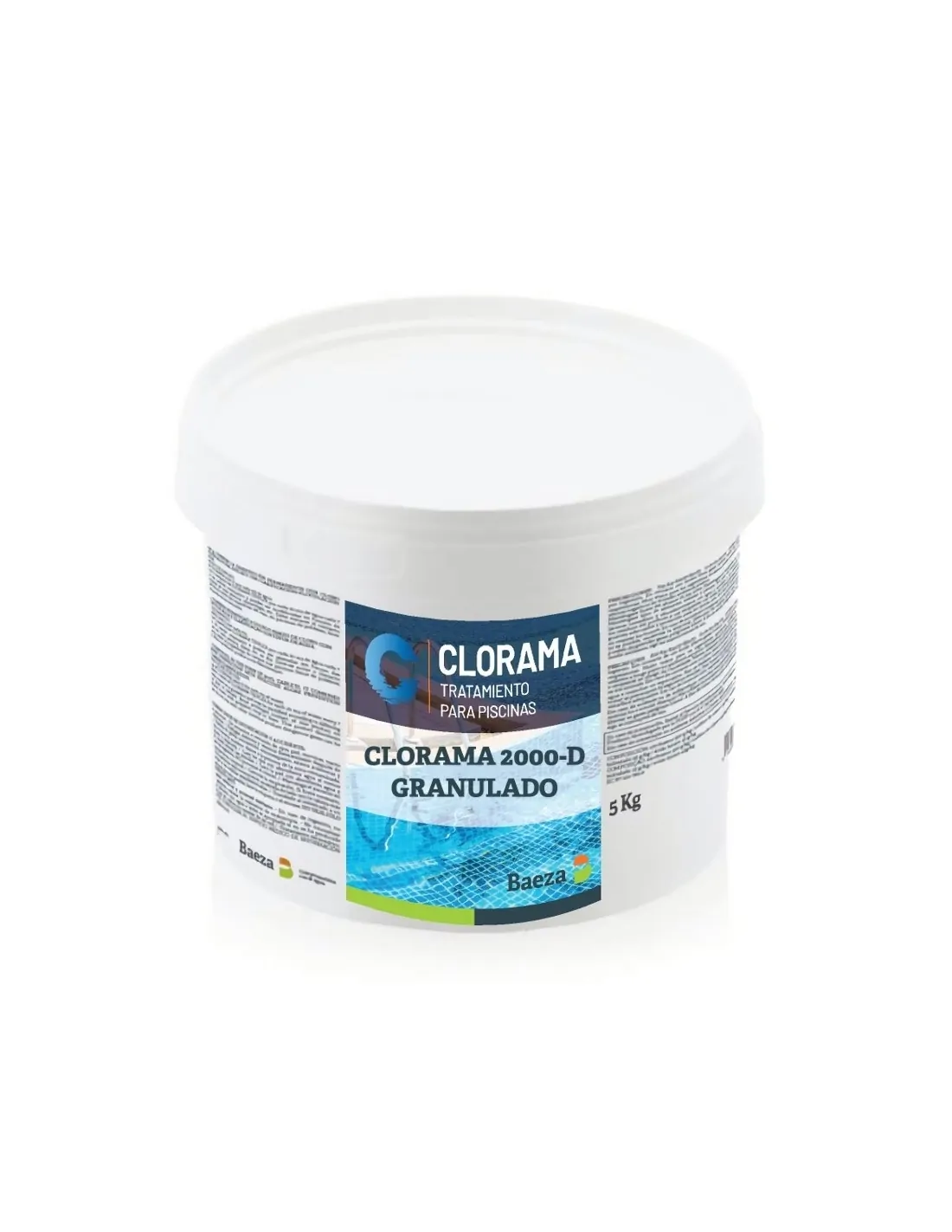 CHLORAMA 2000 D - (GRANULATED CHLORINE SHOCK AT 55%). Highly stabilized fast dissolving organic compound, with a 55% useful chlorine content, for the treatment of public and private swimming pools. Especially indicated for shock treatment at the beginning of the season. DICHLORINE. Package of 5 kg.