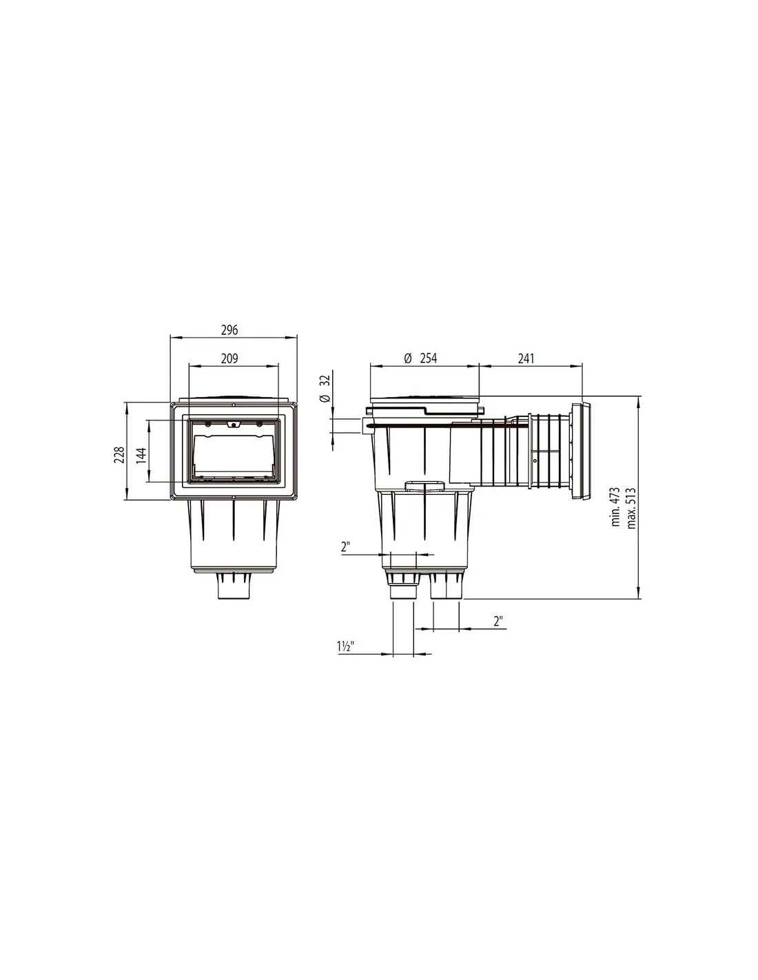 Simultaneous connection to the sump: 1½" internal thread and 2" external thread