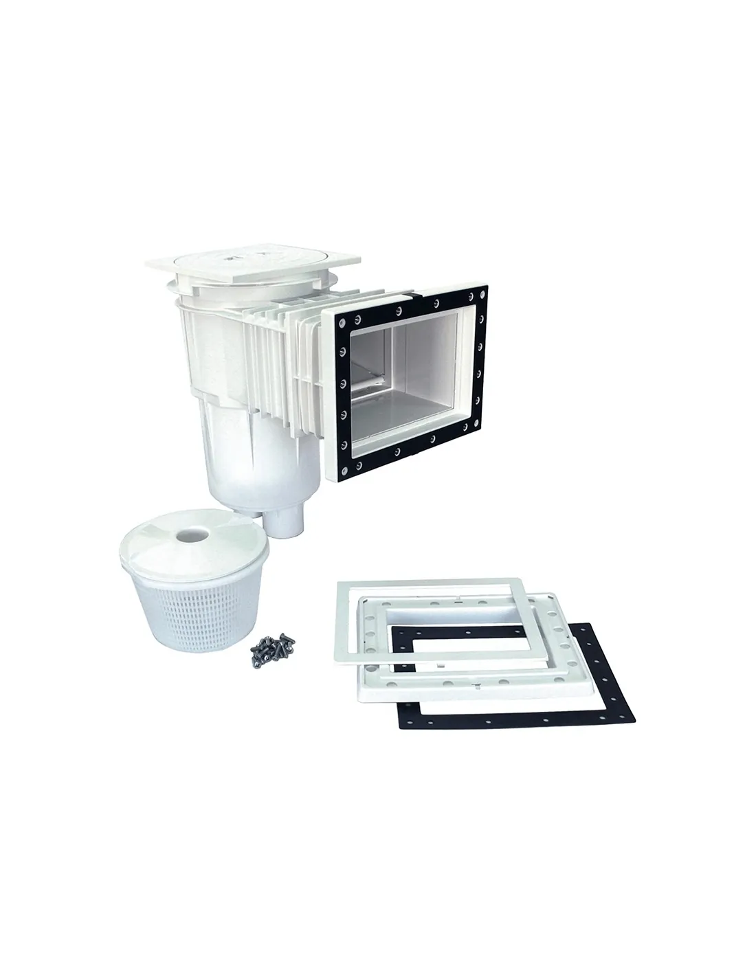 AstralPool skimmer of 17.5 liters capacity with standard mouth, extension, trim and square cover with clamp opening system for liner pools.