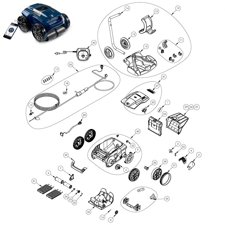 Recambios para robot limpiafondos Zodiac Alpha RA6500 iQ, (Referencia: WR000198). Repuestos originales Zodiac.