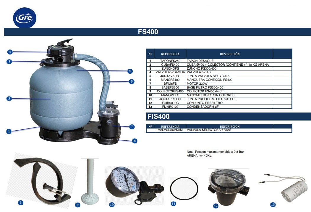 Recambios Filtro Arena Gre FS400