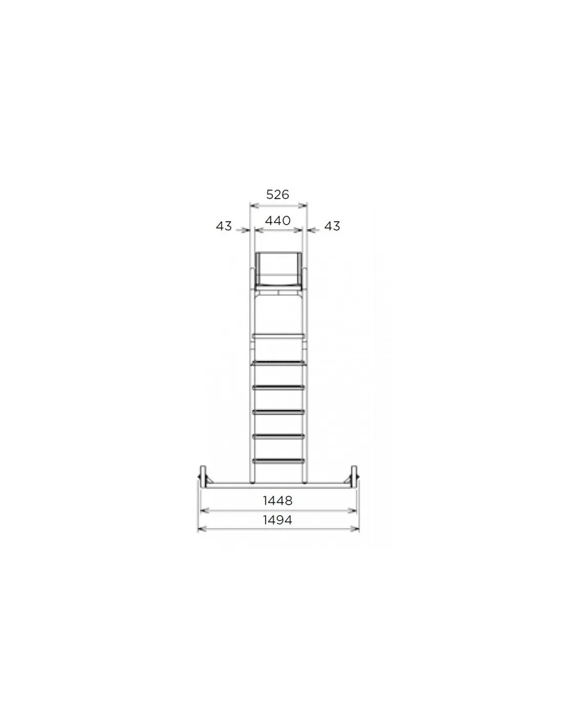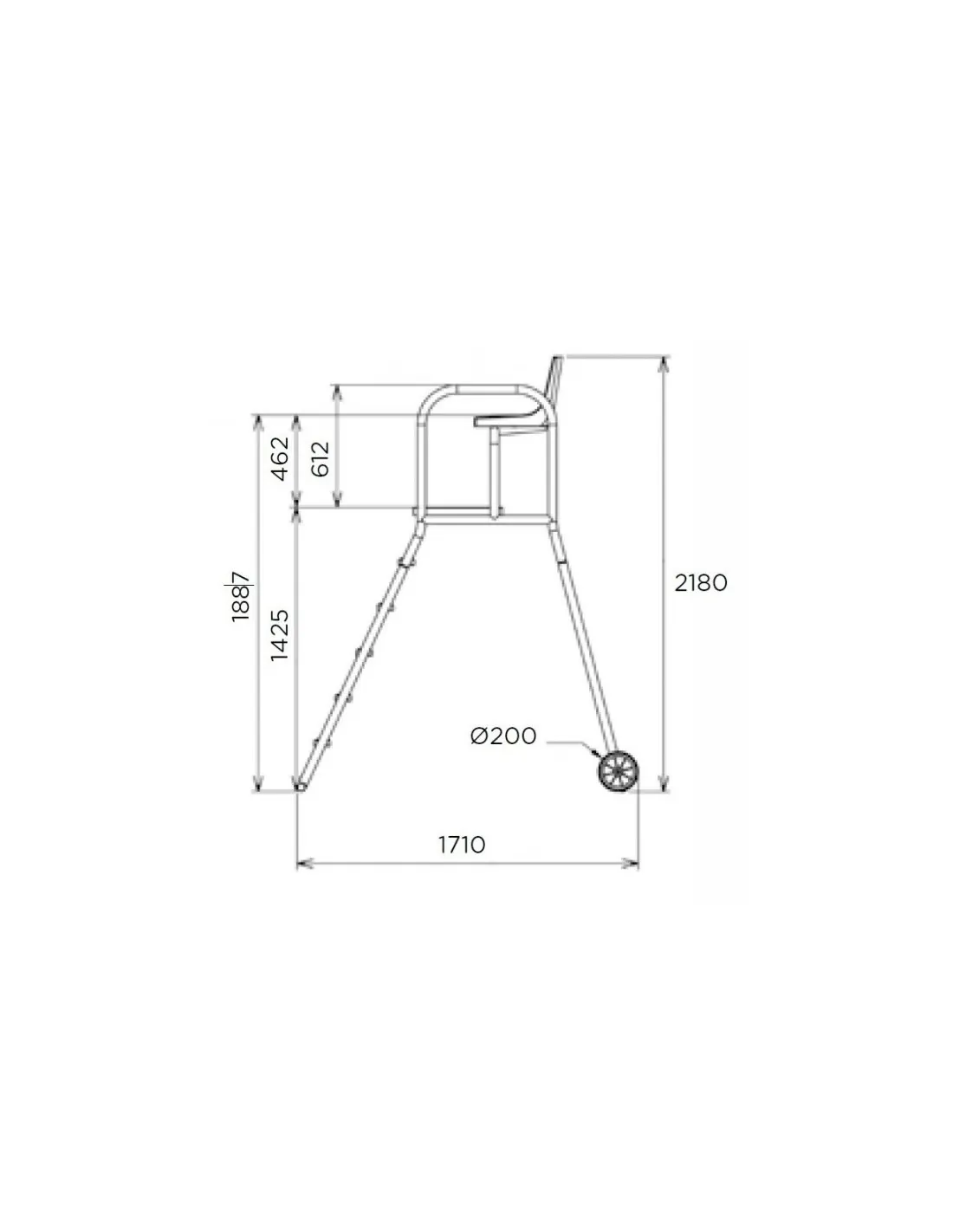 Silla, plataforma y peldaños en material plástico ABS blanco de gran resistencia.