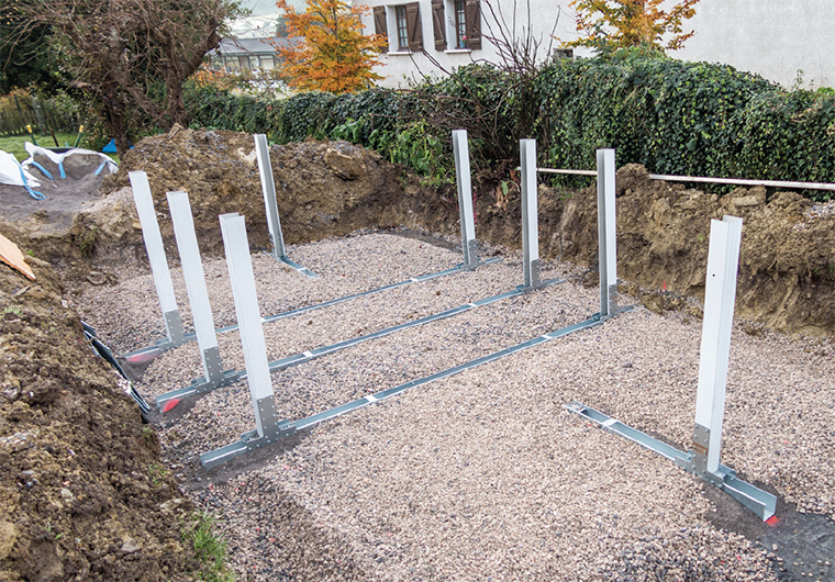 Instalación: Basta con realizar unas pequeñas zanjas para encastrar las vigas y nivelar el terreno.