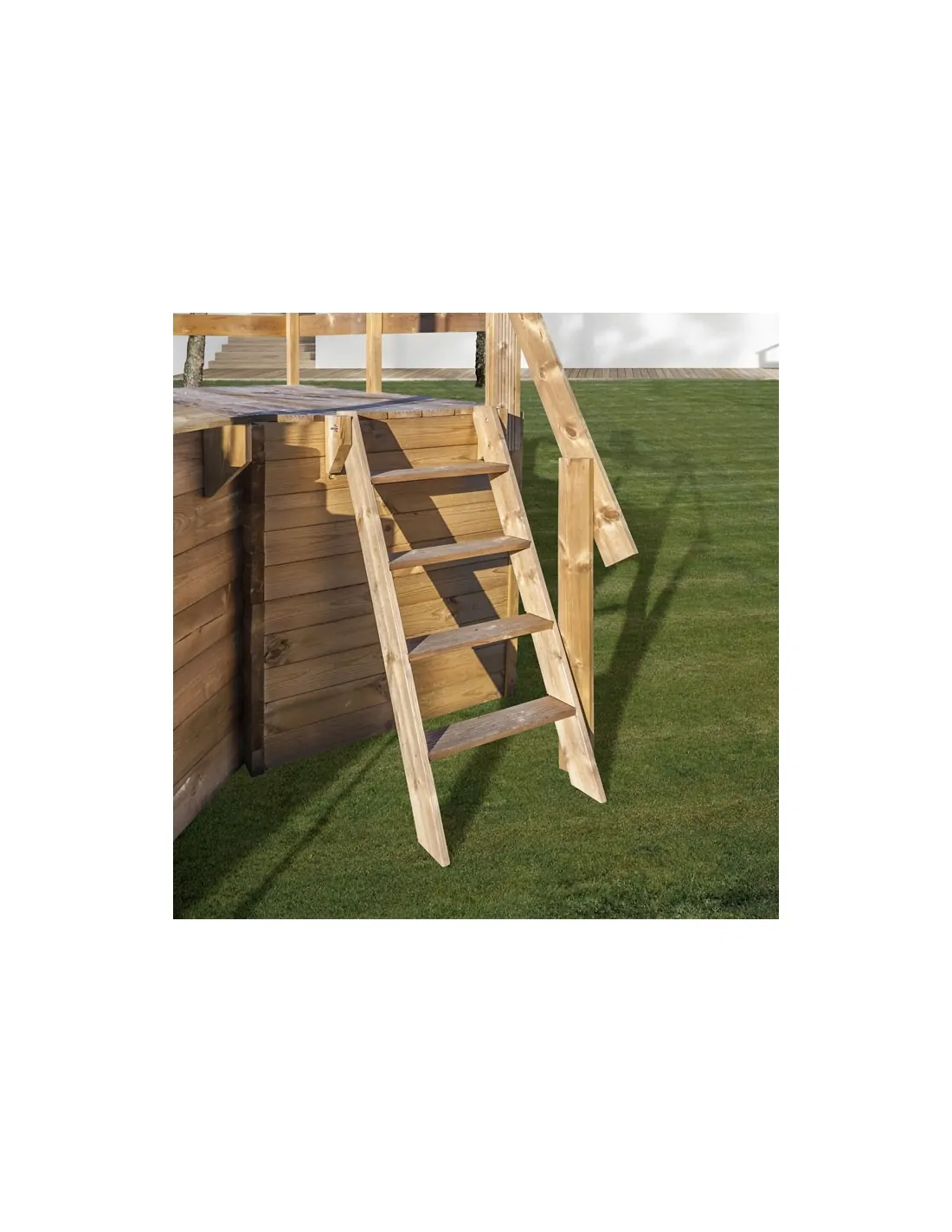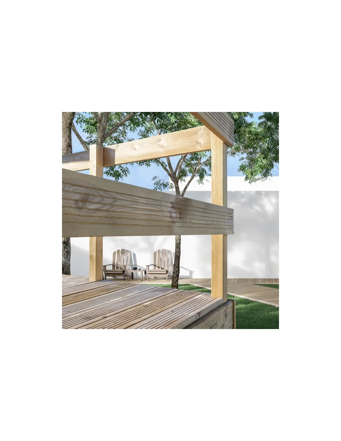 Tarima de madera maciza Gre diseñada para piscinas elevadas de madera que puedan ajustarse a las dimensiones de la tarima.