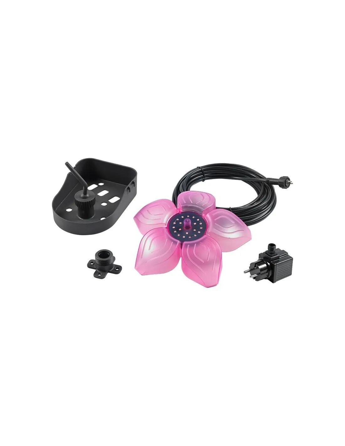 Luz LED en forma de flor en color rosa para instalación flotante (en superficie) o fuera del agua.