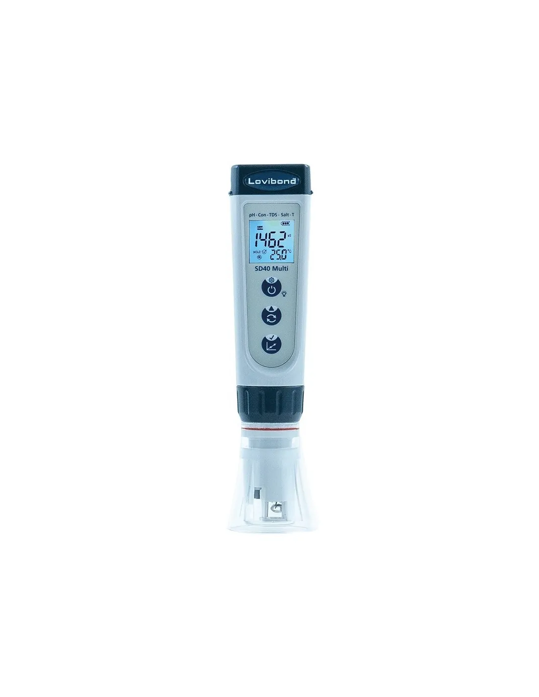 El medidor portátil Lovibond SD40 Multi para mediciones multiparámetro del agua: pH, conductividad, TDS, salinidad y temperatura.