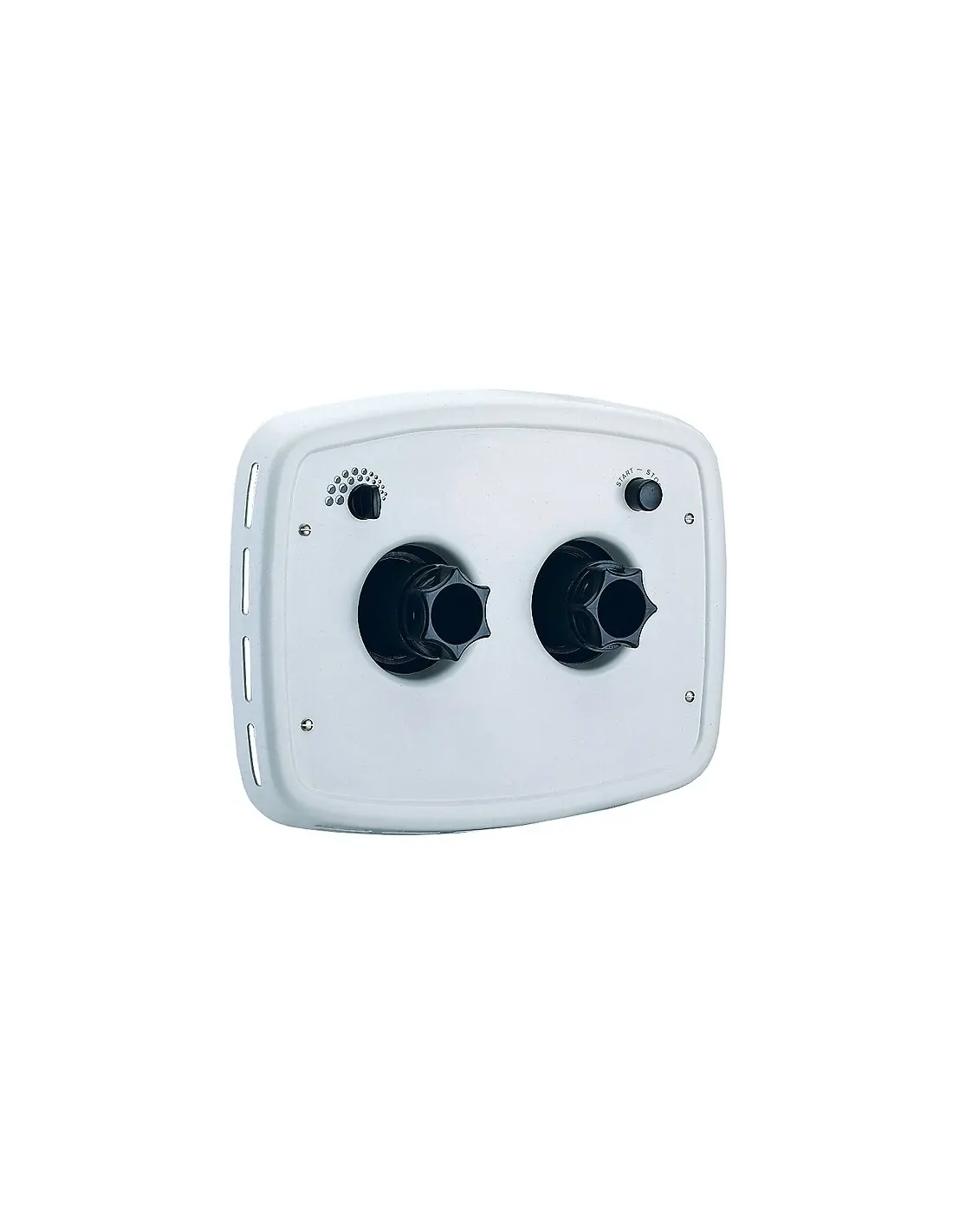 Conjuntos boquilla con carátula frontal rectangular en plástico color blanco modelo doble Compuesto de: Carátula frontal, conjunto boquilla, mando paro/marcha y mando regulación de aire. Componentes en acero inox. AISI-316.