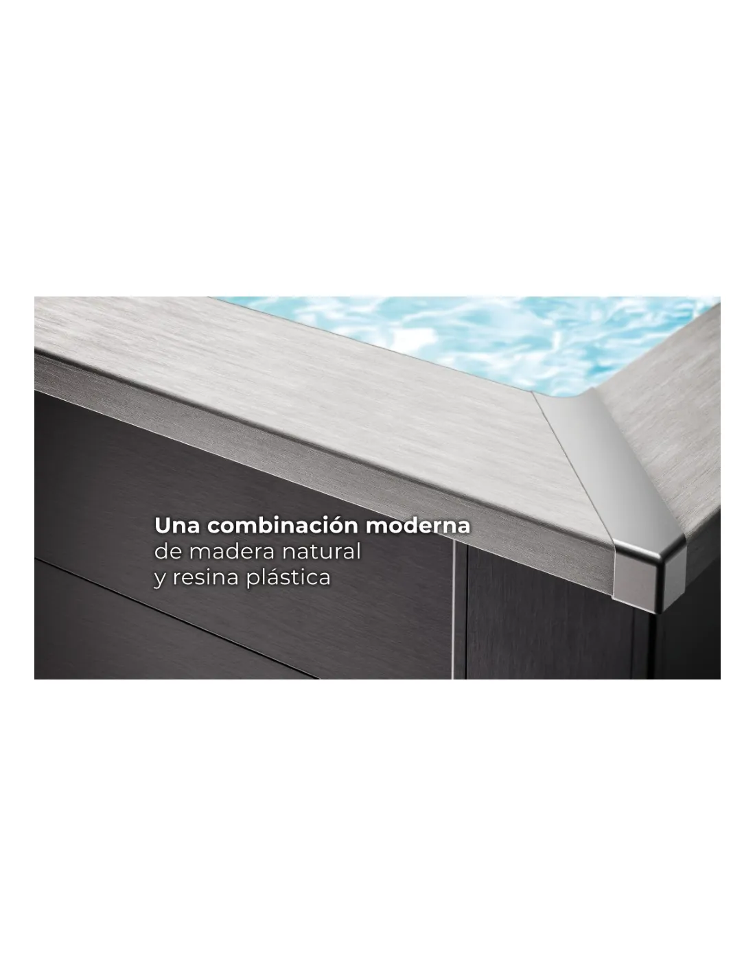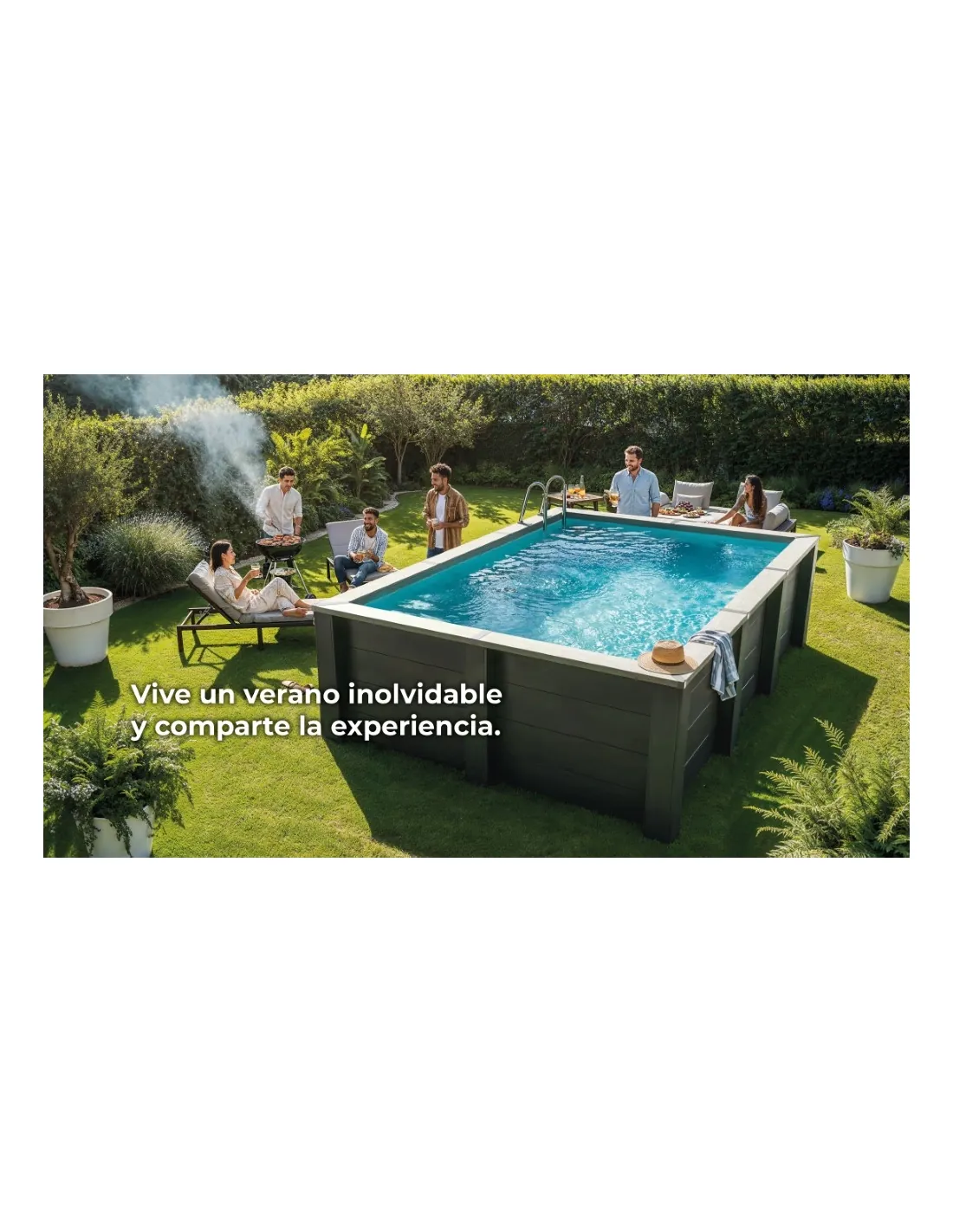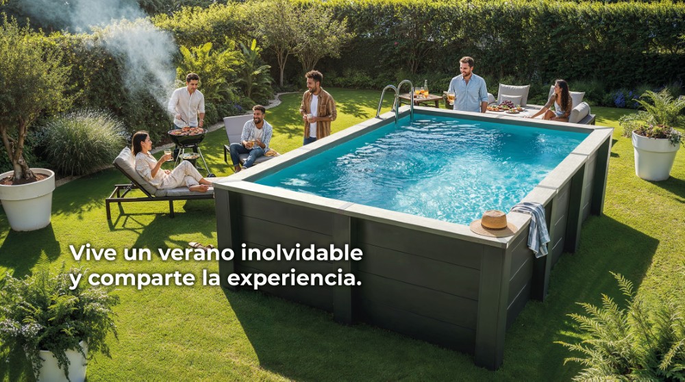 Si prefieres un acabado más decorativo, puedes optar por nuestras piscinas de madera o las modernas piscinas de composite, que combinan estética y durabilidad con muy poco mantenimiento.