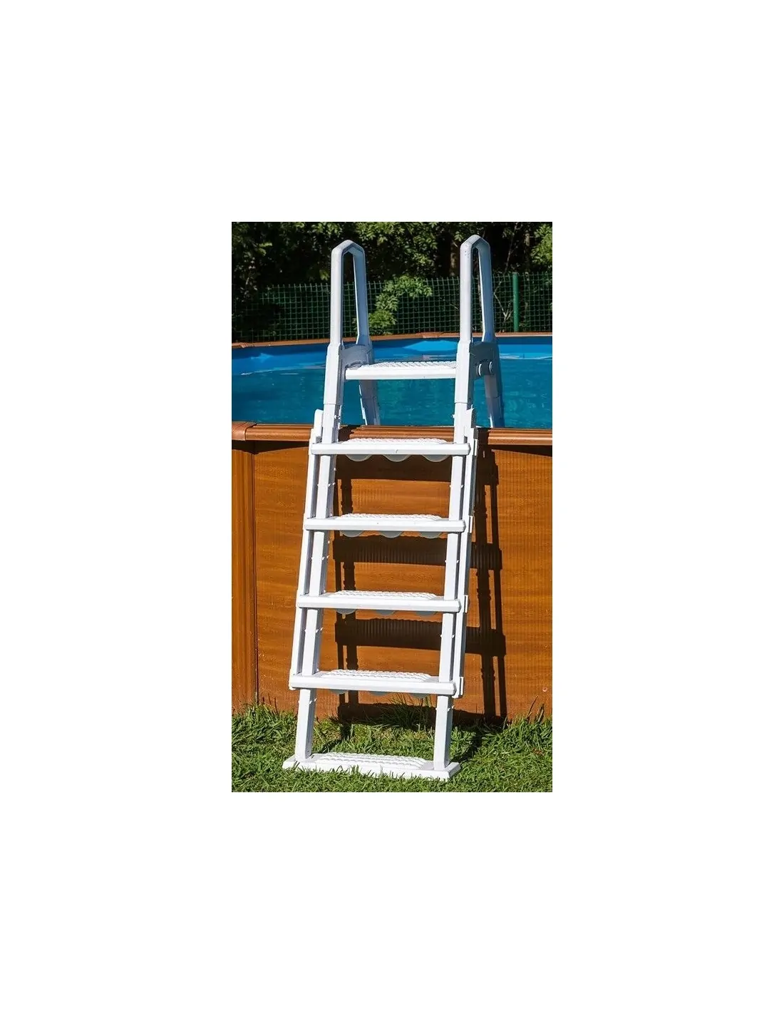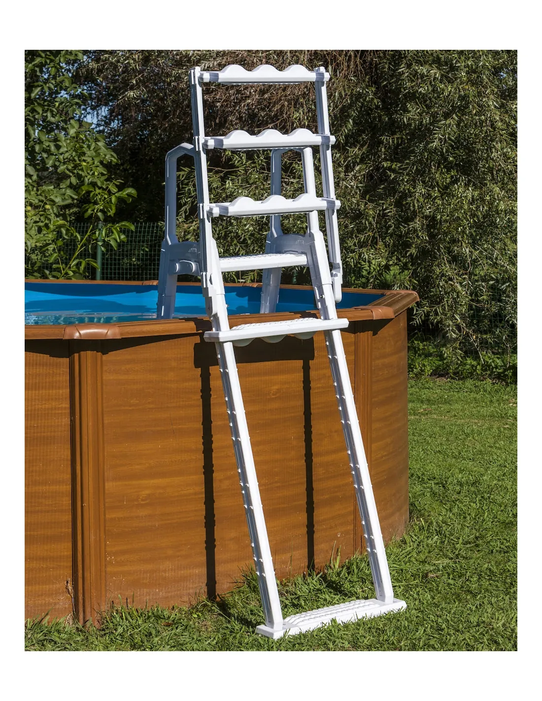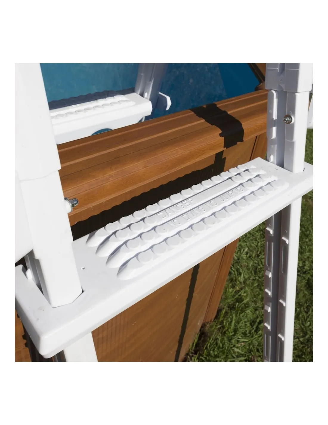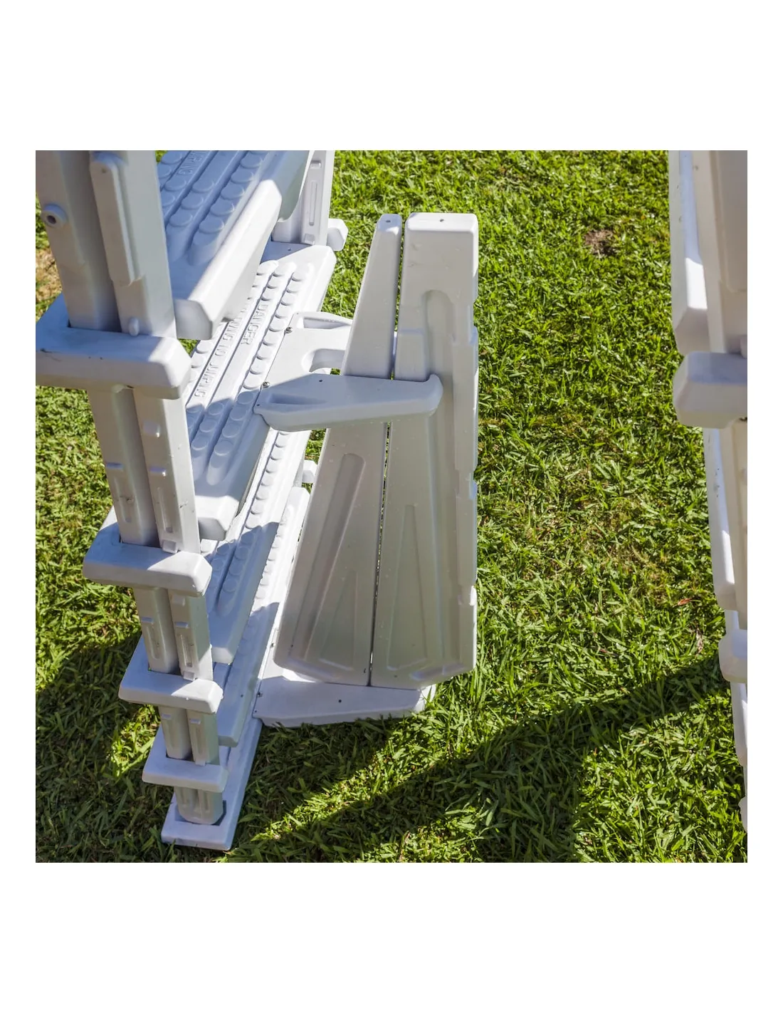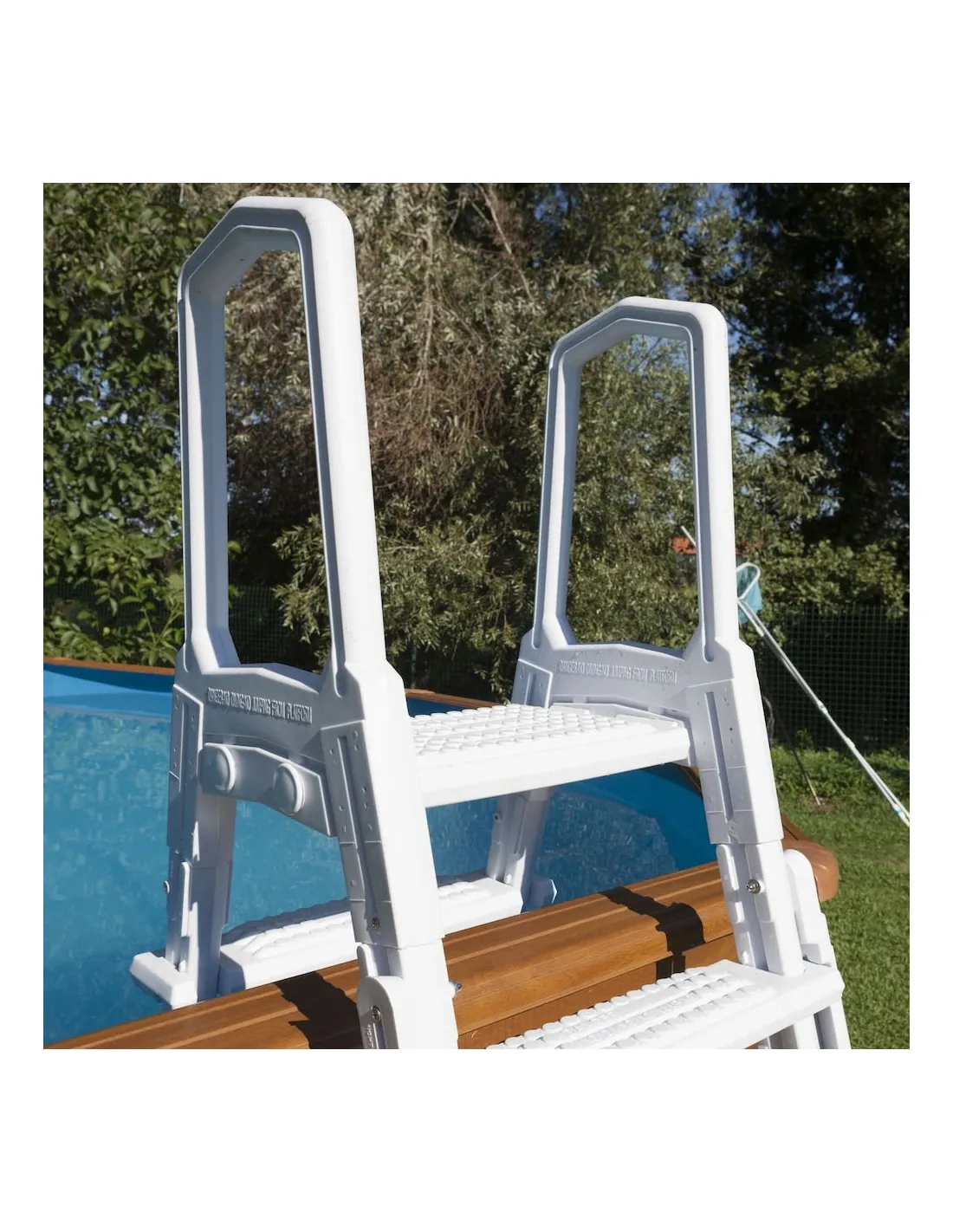 Escalera de seguridad Premium 2x4 peldaños + Plataforma Gre para piscinas elevadas.