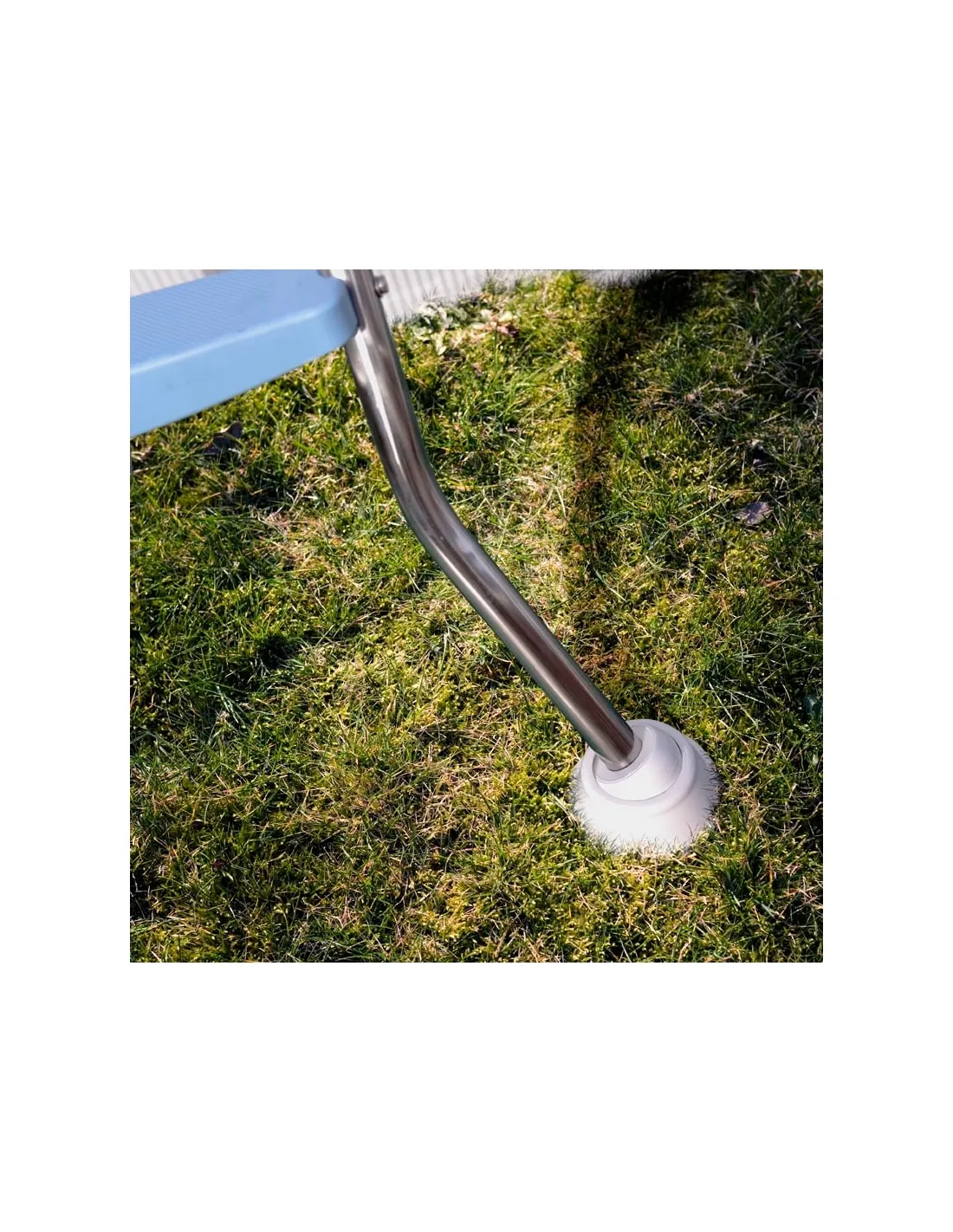 Peldaños antideslizantes para una mayor seguridad. Los cuatro apoyos de la escalera están recubiertos con una goma, lo que garantiza estabilidad y protección al liner