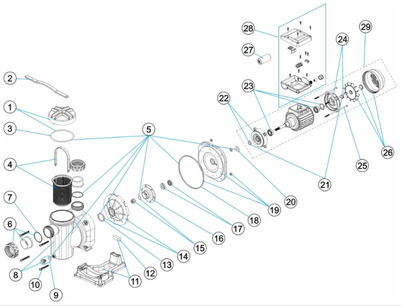 Ricambi per pompe AstralPool modello Sena, (Riferimenti: 25461, 25462, 25463, 25464, 25465, 25466, 25467, 25468). Ricambi originali AstralPool.