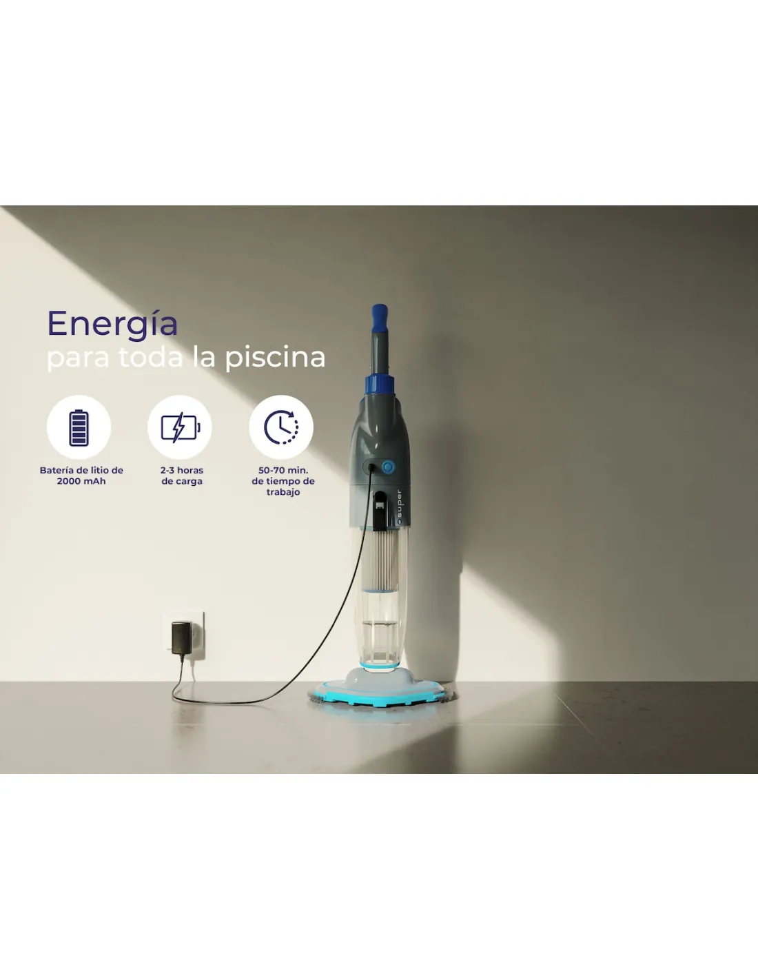- Super Vac è un pulitore elettrico per piscine autonomo