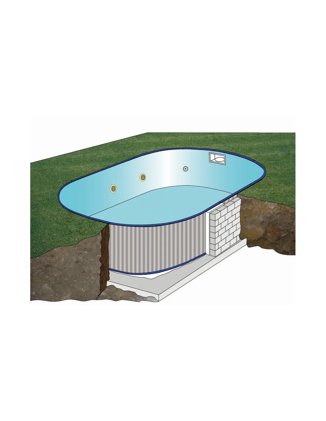 Piscina interrata ovale con pareti in acciaio