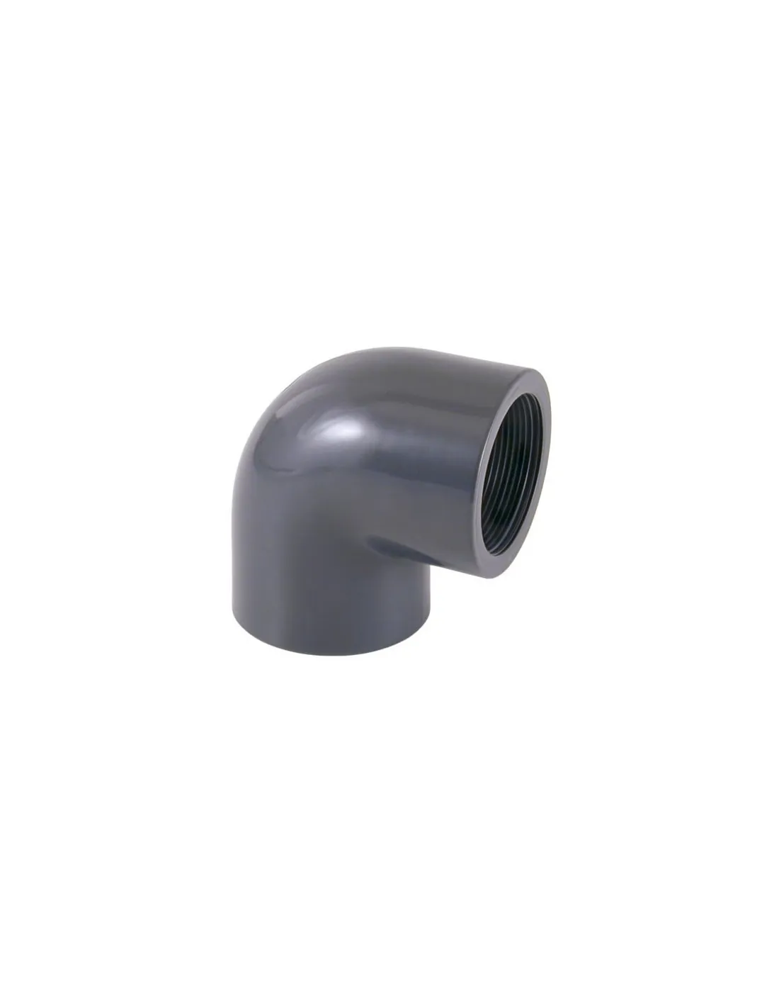 Questo prodotto è disponibile in diverse varianti. Consultate la tabella per trovare quella che meglio si adatta alle vostre esigenze Gomito misto in PVC 90º incollato e filettato.
