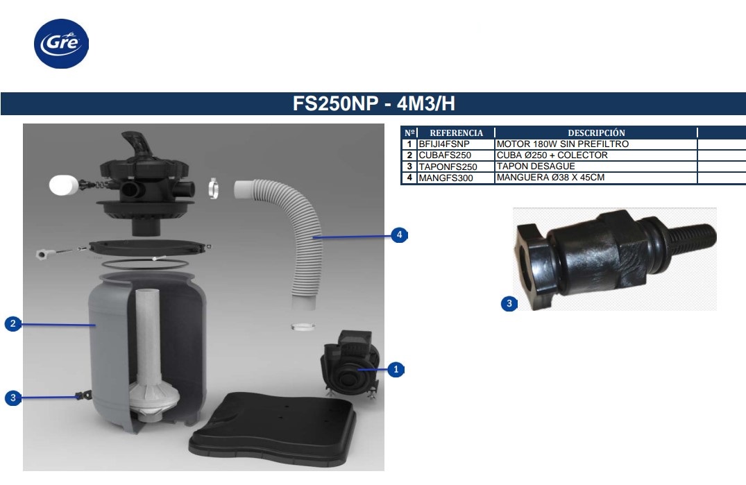 Onderdelen Gre voor filtratie-uitrusting, zandfilter (Referentie: FS250NP). Originele GRE reserveonderdelen.