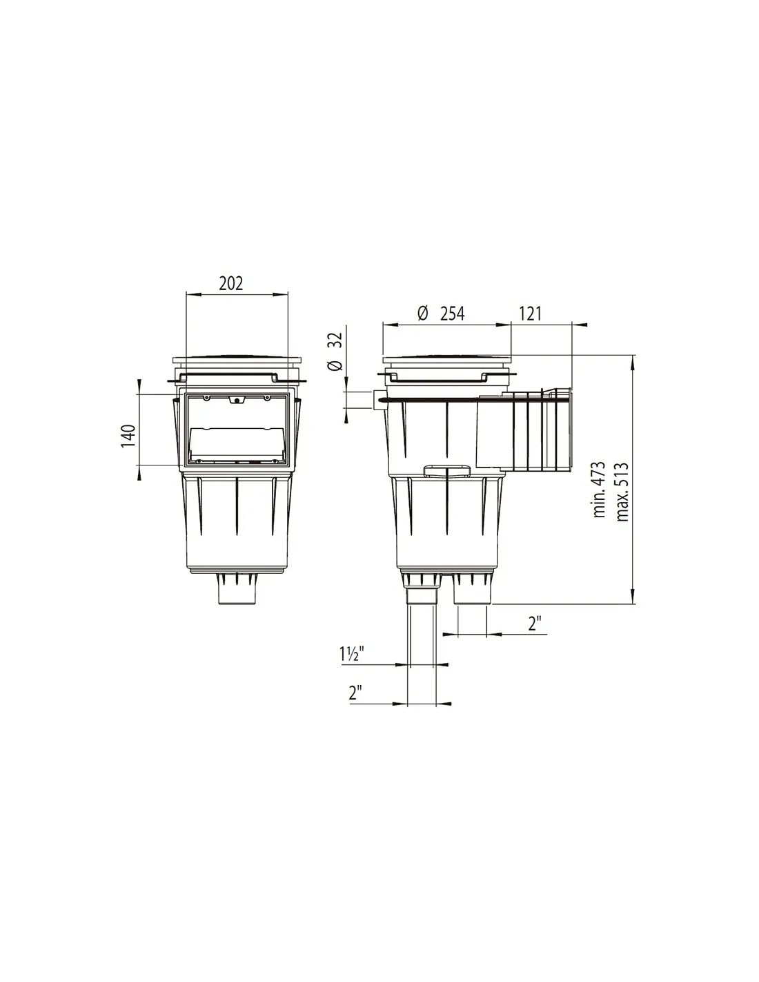 AstralPool 17,5 liter afschuimer met standaard monding en vierkant deksel met klemsysteem voor betonnen zwembaden.