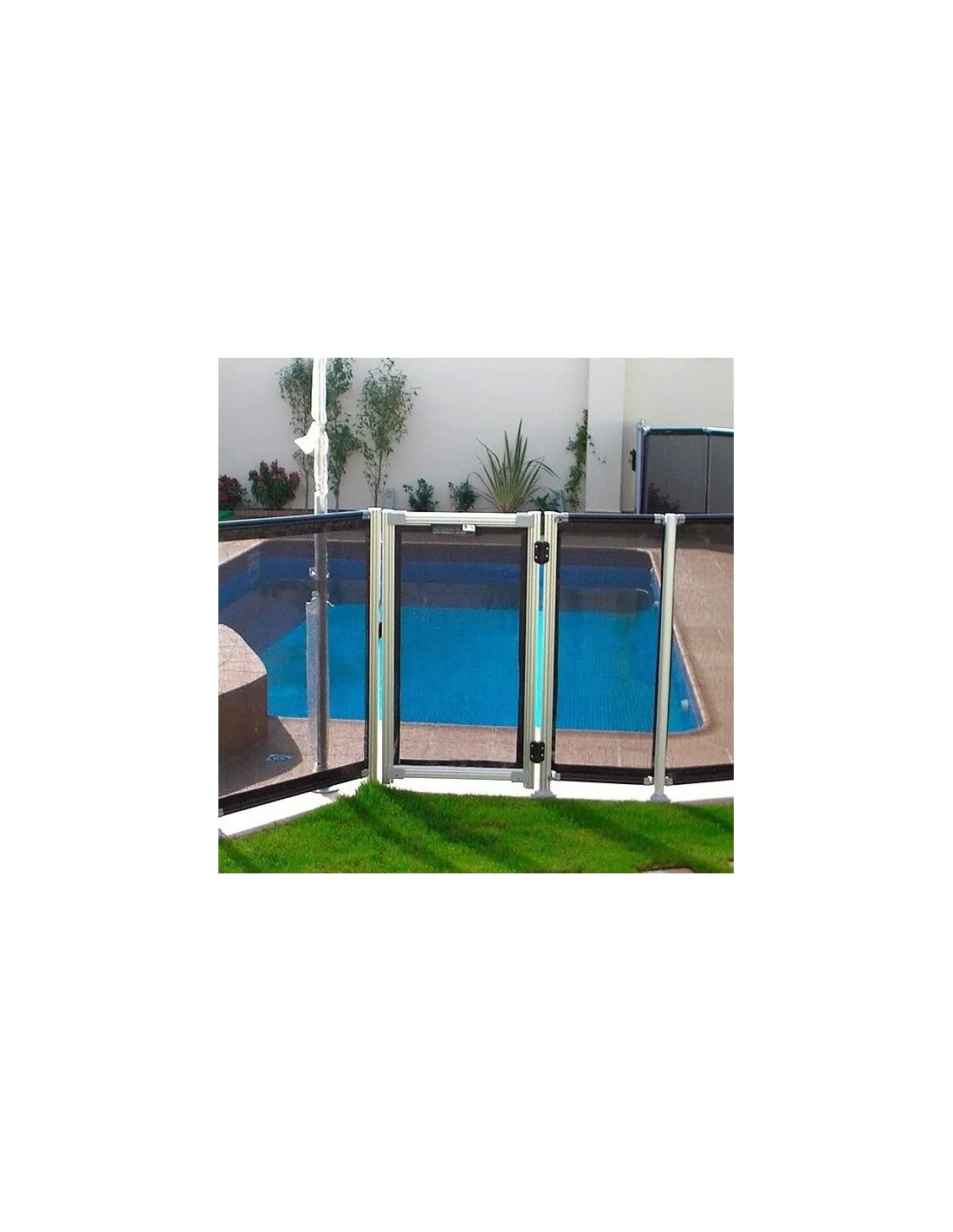 Het hek heeft een automatische terugloop en een sleutelslot om de omheining af te sluiten waar het zwembad zich bevindt.