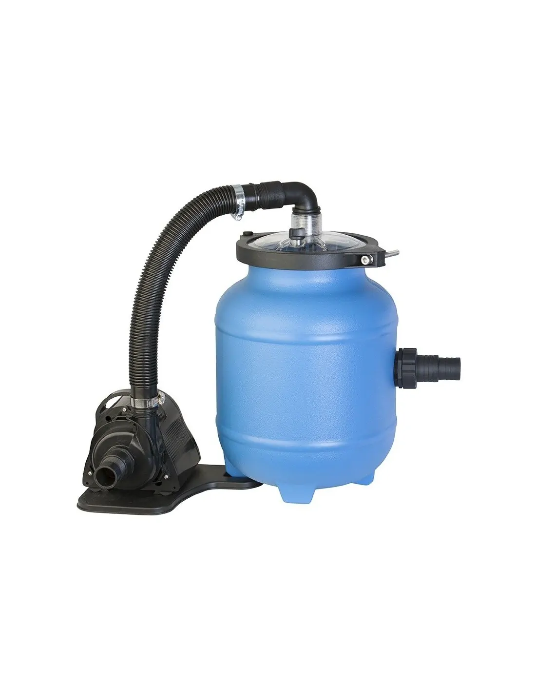 Zuiveringsinstallatie voor de filtratie van verwijderbare zwembaden die opvalt door zijn werking met Aqualoon, een nieuw filtermedium met een groter retentievermogen dan zand (tot 3 micron).