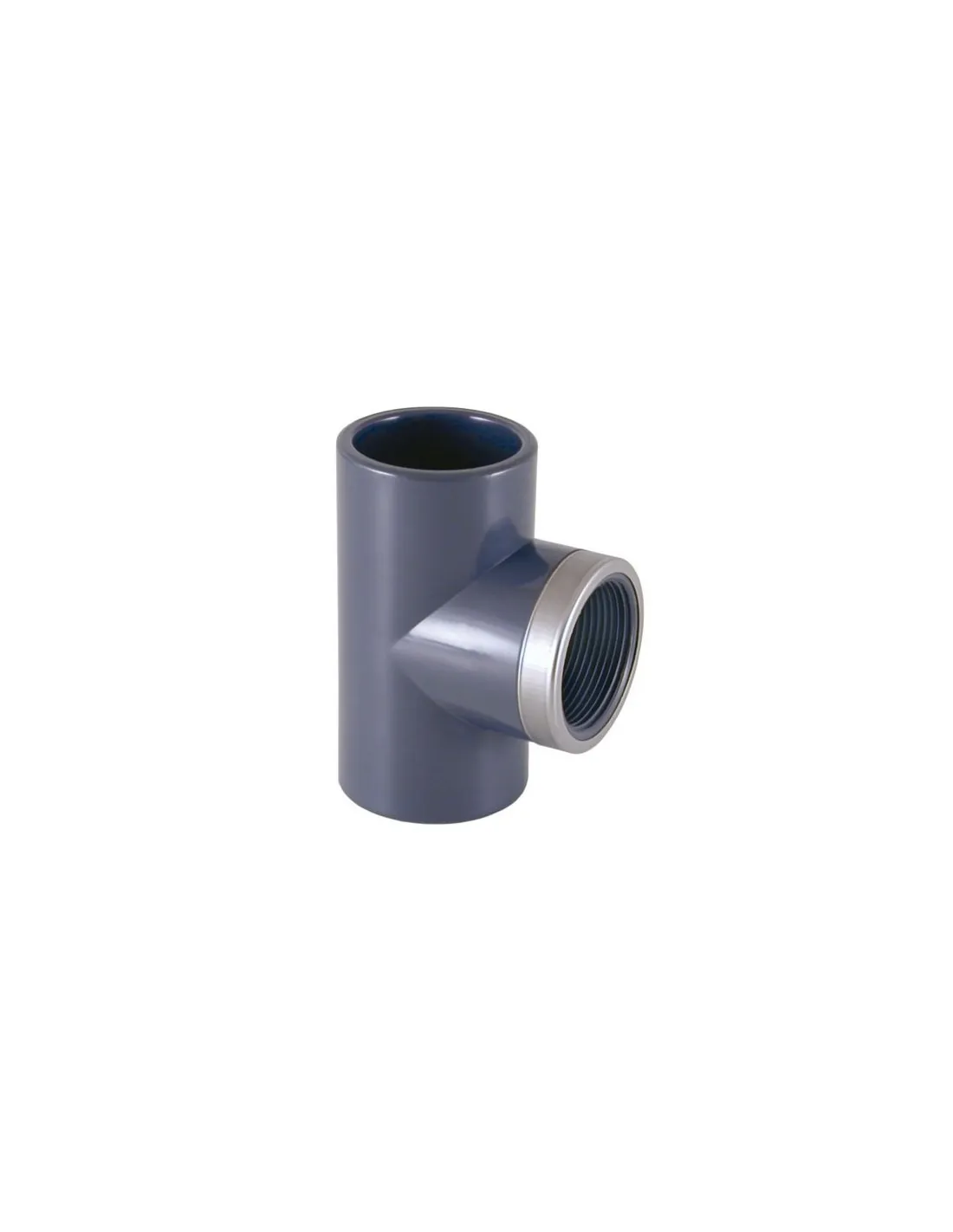 Verstevigd 90º PVC-mengstuk, gelijmd en met schroefdraad, vervaardigd door Cepex (UP. 03. SFTR).