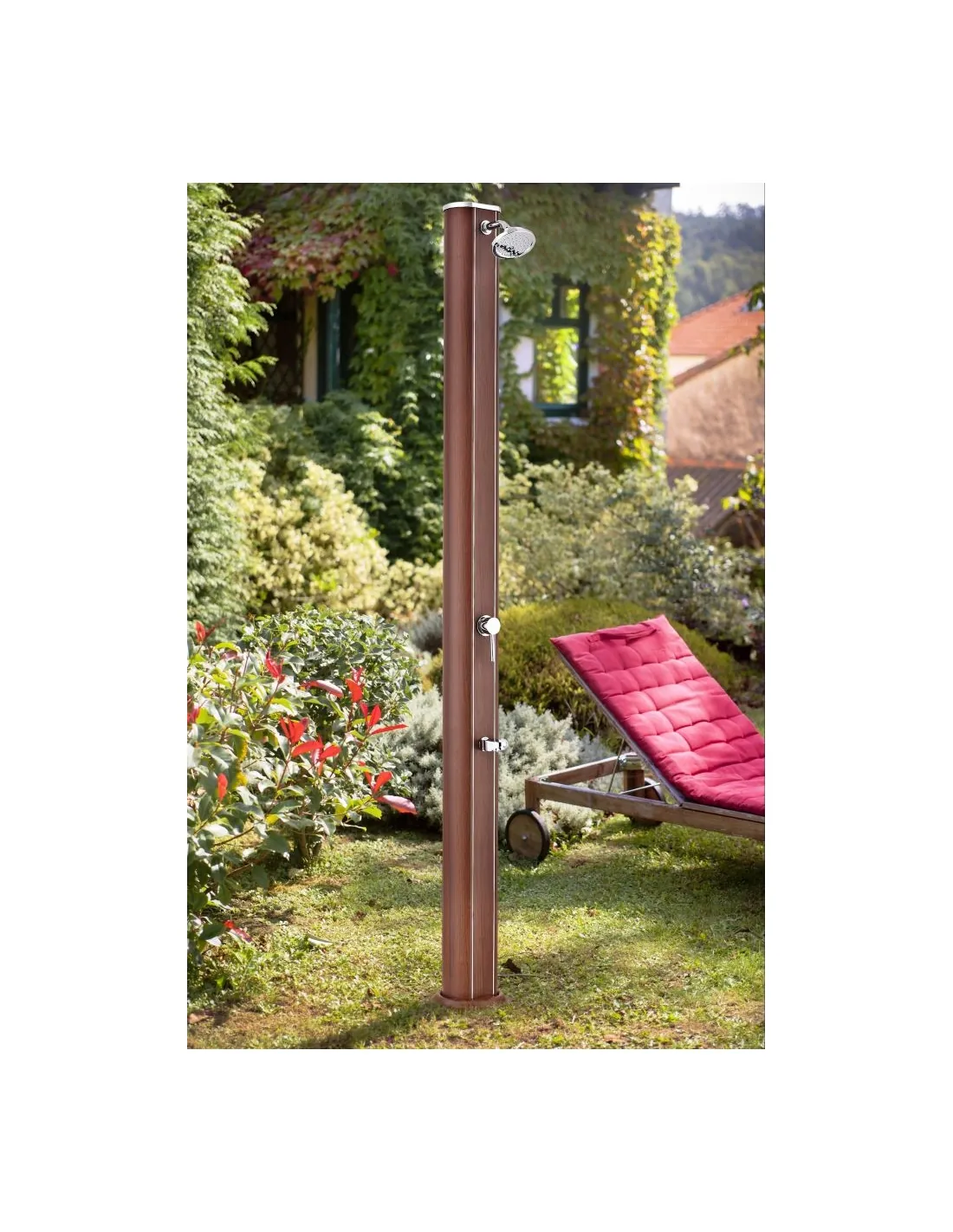 De zonnedouche is een praktische oplossing om buiten van warm water te genieten zonder complicaties. Voor de installatie zijn geen bouwwerkzaamheden nodig: plaats hem gewoon in de tuin, op het terras of bij het zwembad en sluit hem aan op een slang met watertoevoer. Het systeem maakt gebruik van zonlicht om het water te verwarmen, waardoor het elektriciteitsverbruik volledig wegvalt.