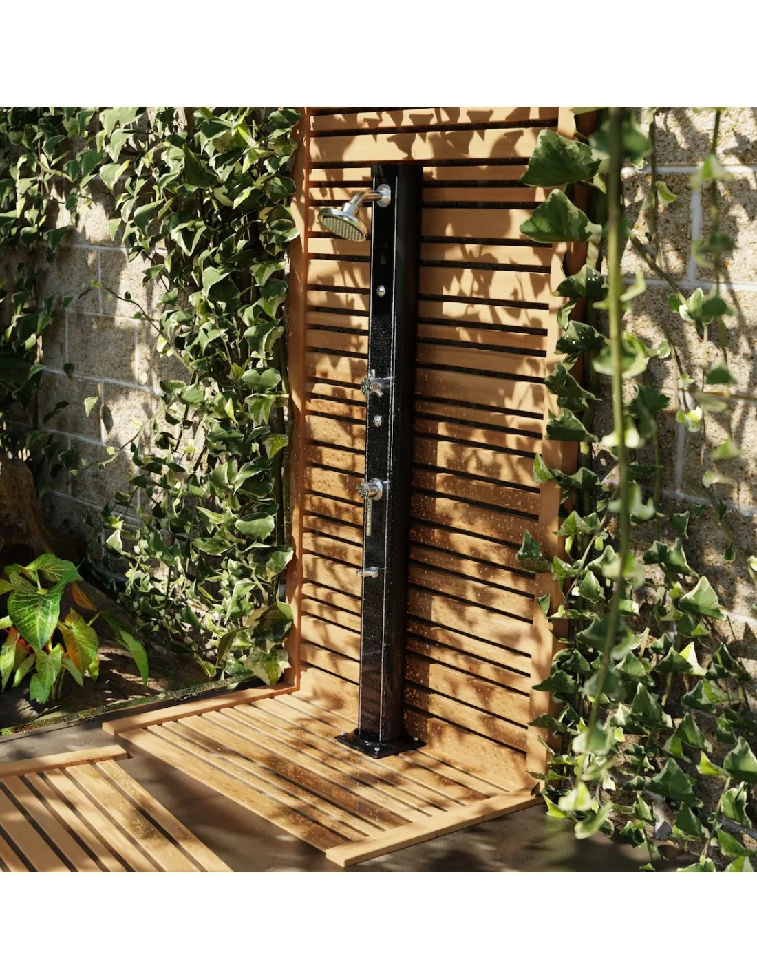 De douche op zonne-energie voor tuin of zwembad is een praktische en ecologische optie waarmee je kunt genieten van gratis warm water met alleen de energie van de zon. Voor de werking is geen elektriciteit nodig, dus je bespaart constant energie.