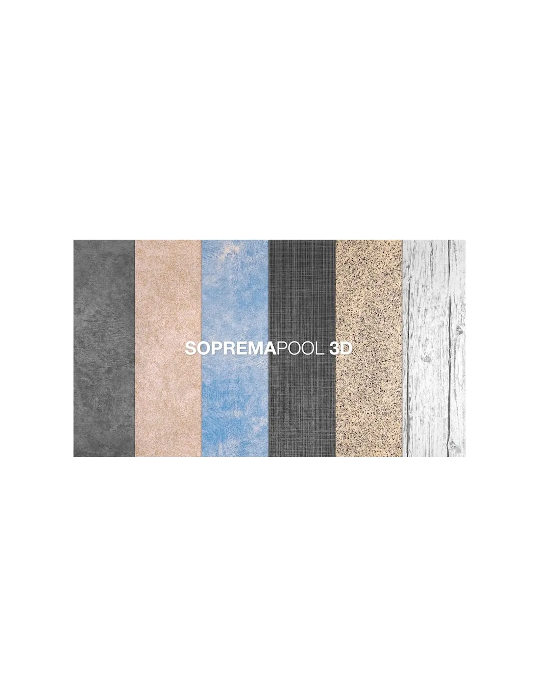 Gewapende membranen van 1,8 mm voor het waterdicht maken en bekleden van zwembaden. De SOPREMAPOOL 3D-lijn werd ontworpen met een duidelijk doel: de textuur en het uitzicht van de natuur nabootsen. Het oppervlak biedt een unieke tactiele ervaring en heeft ook antislipeigenschappen.