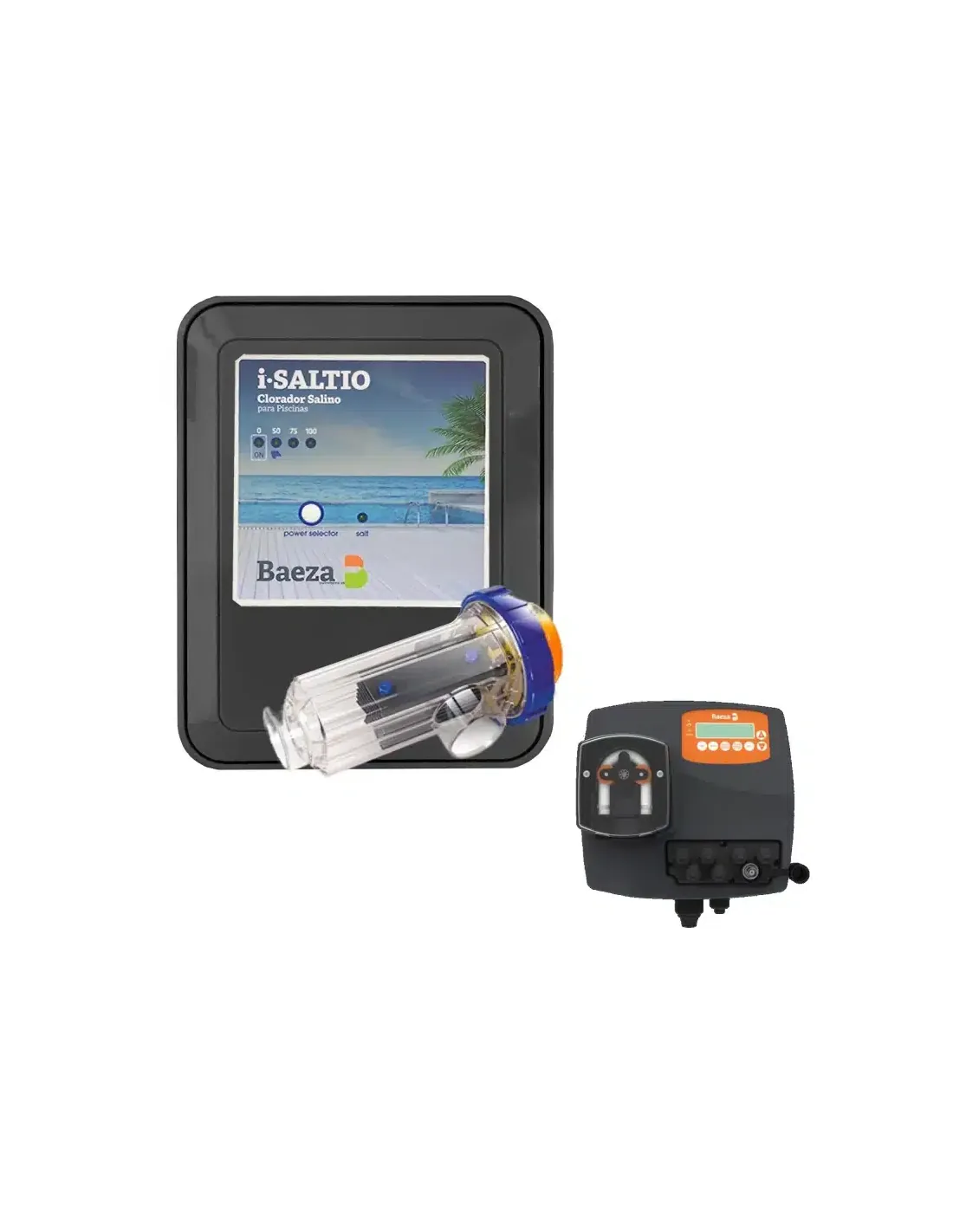 Este produto está disponível em diferentes variantes. Consulte a tabela para encontrar a que melhor se adapta às suas necessidades Clorador de água salgada i-Saltio com controlo de pH.
