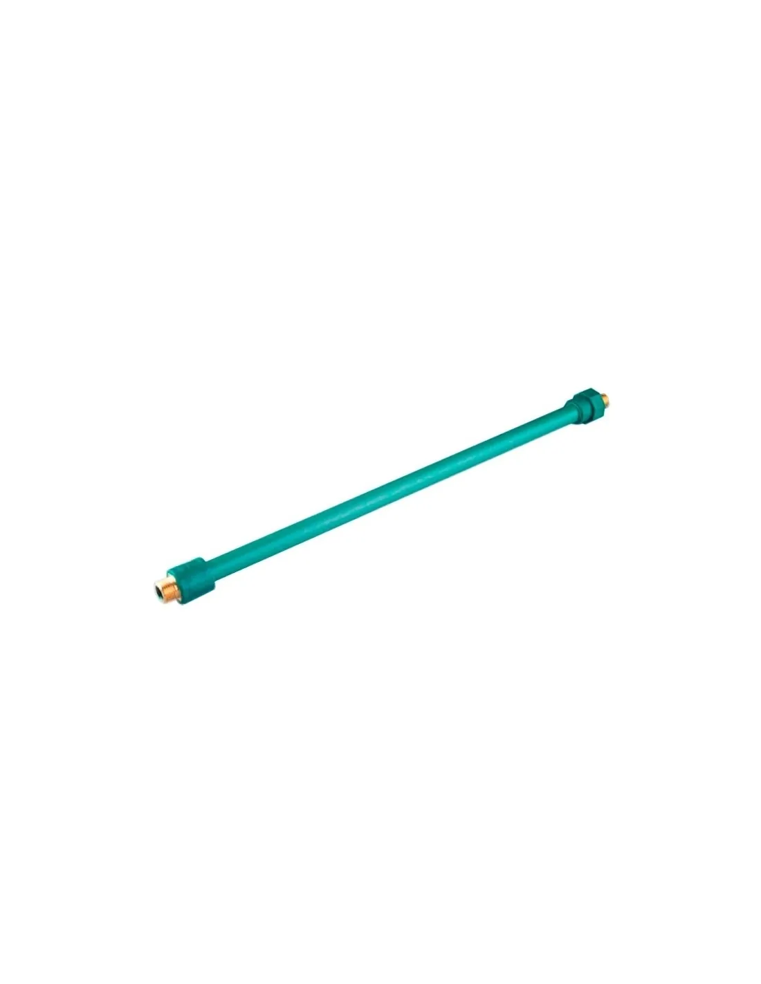 Tubo de cor verde feito de polipropileno reforçado com fibra de vidro, com ligações metálicas (fio macho em ambas as extremidades).